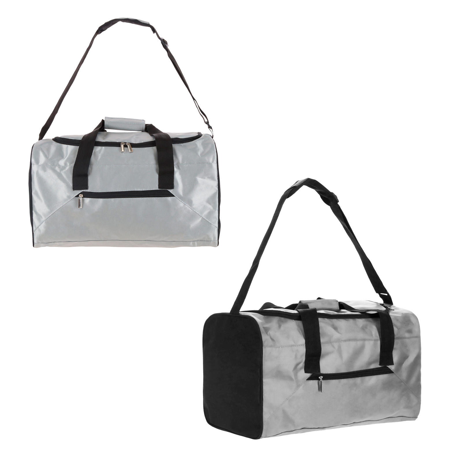 Maleta deportiva con un compartimento principal reforzado, asas sujetadoras con velcro, correa ajustable, un compartimento frontal y fuelle.