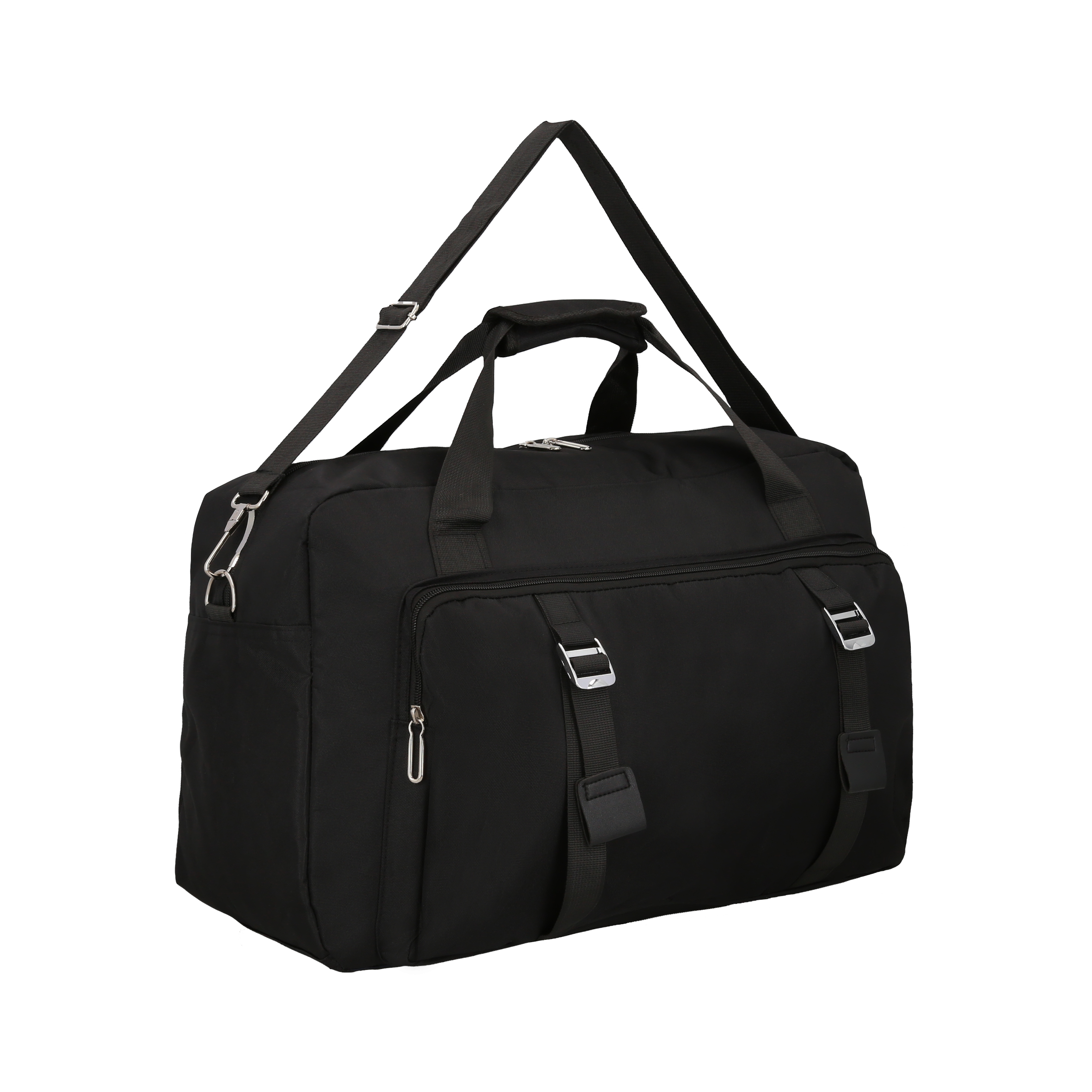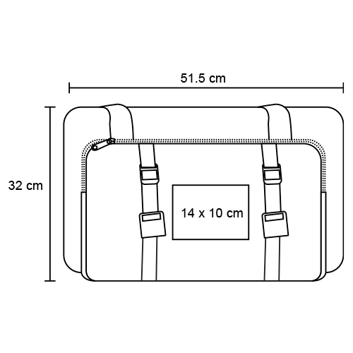 Maleta de 2 compartimentos, 1 compartimento principal con bolsa interna plastificada, 1 compartimento frontal, dos asas y correa ajustable.