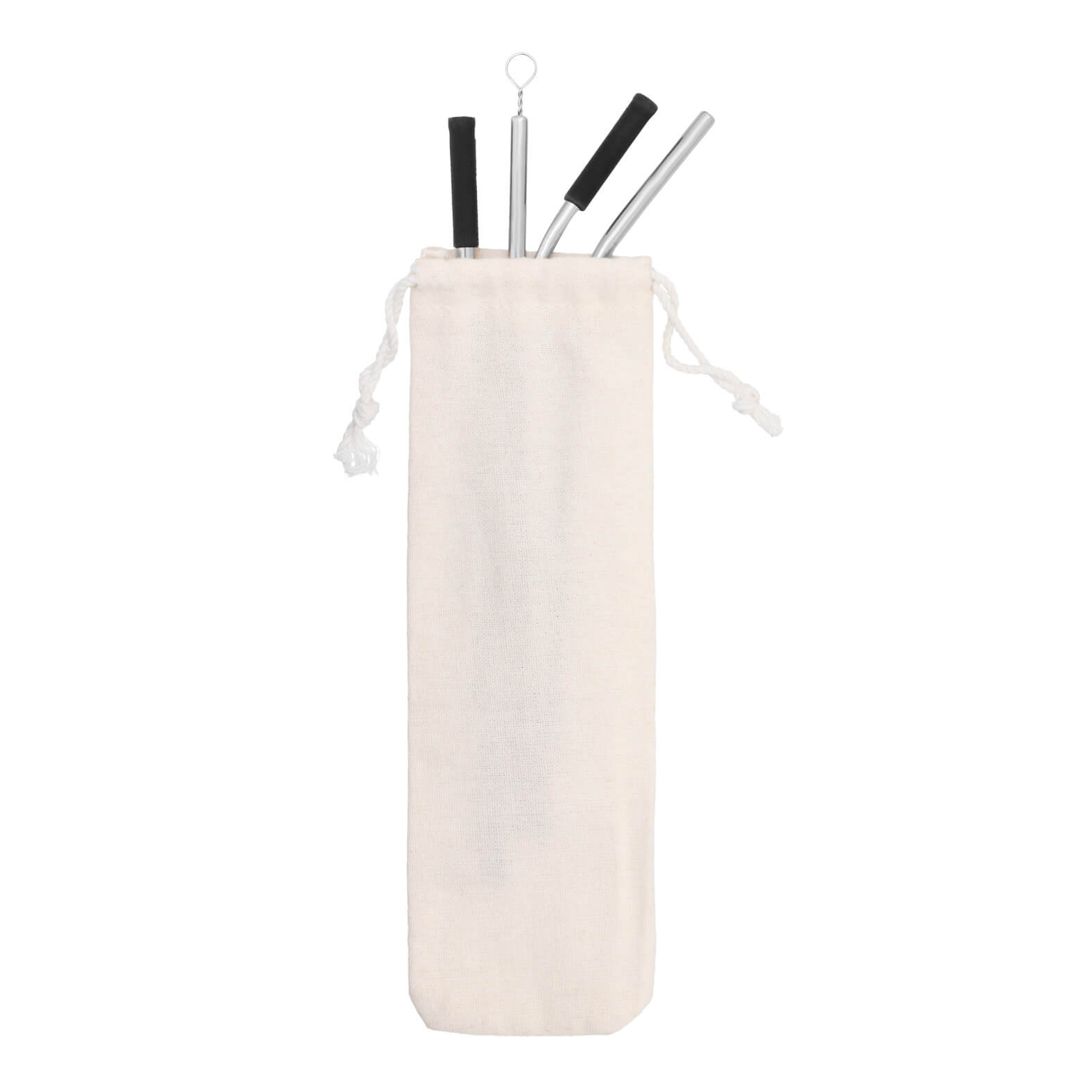 Set de popotes de acero inoxidable reutilizables con estuche de poliéster y correa ajustable que incluye: boquillas de silicón, 2 popotes curvos y 2 popotes rectos con cepillo limpiador.