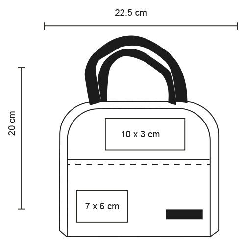Lonchera de poliéster con interior térmico metalizado, bolsa exterior y asa.