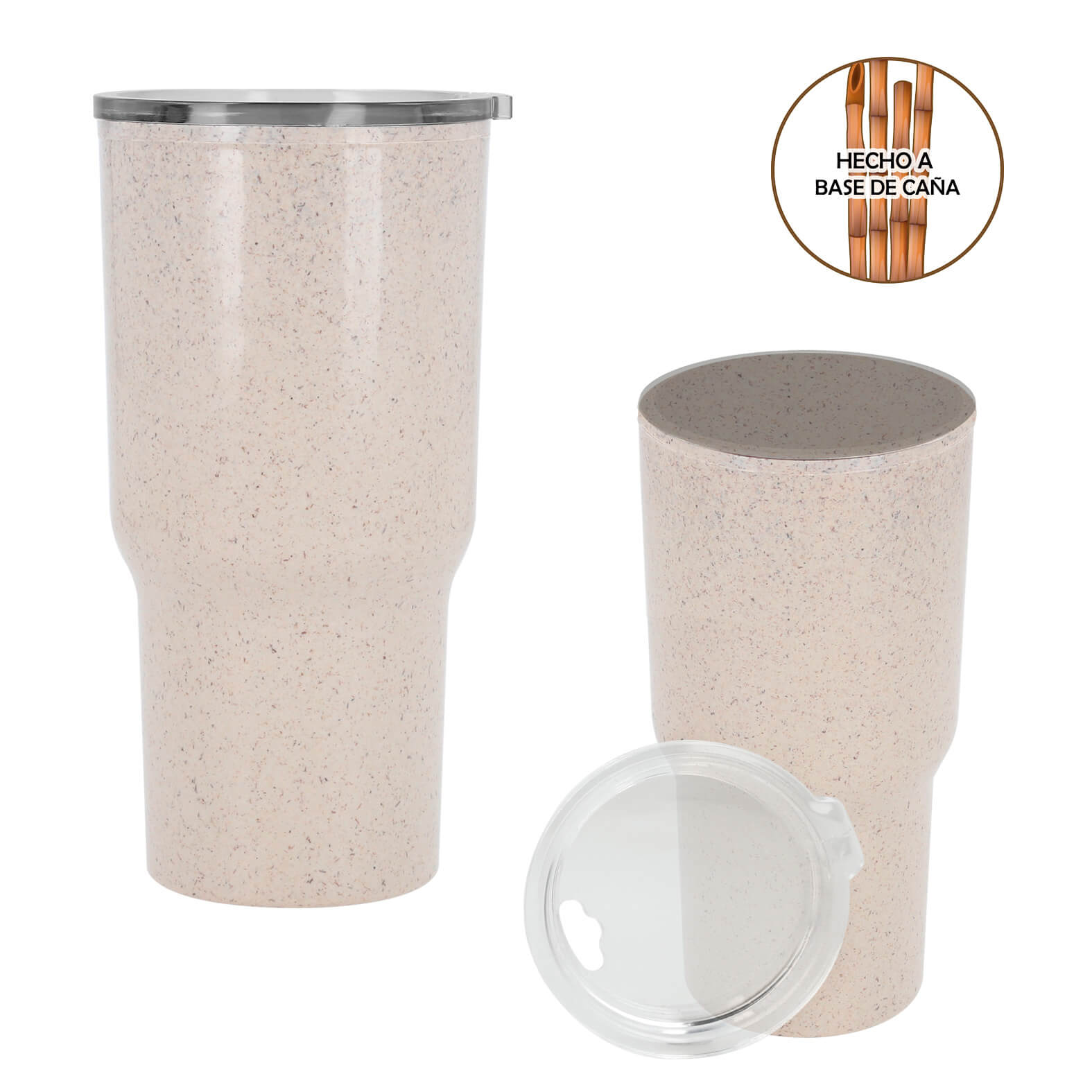 Termo de RPET de doble pared hecho a base de caña con tapa que cierra a presión.