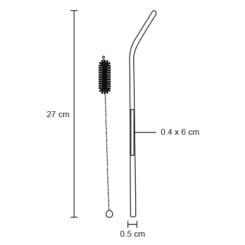 Popote de acero inoxidable reutilizable. Incluye cepillo limpiador.