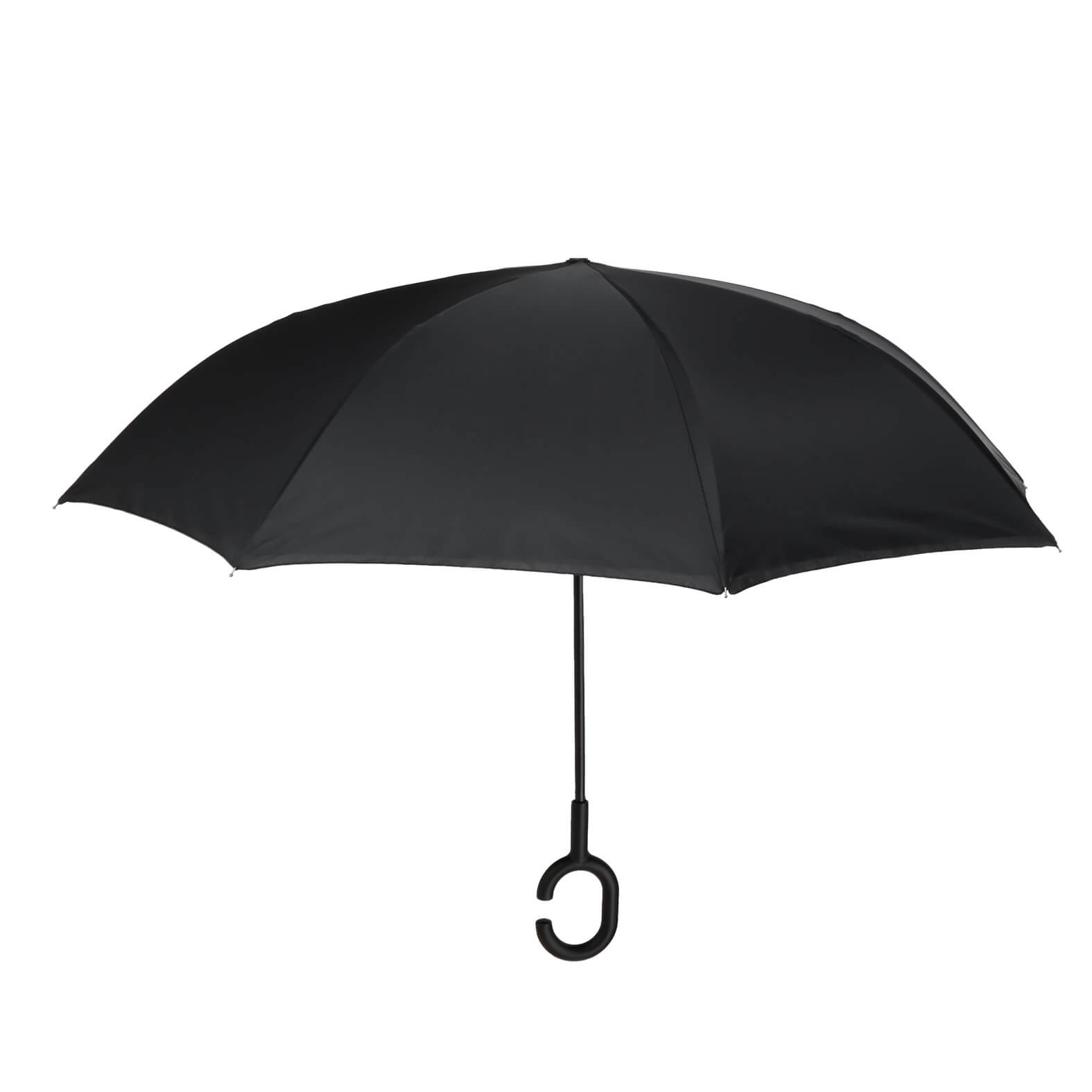 Paraguas reversible manual de 8 gajos dobles y mango de plástico con sujeta bolsas.