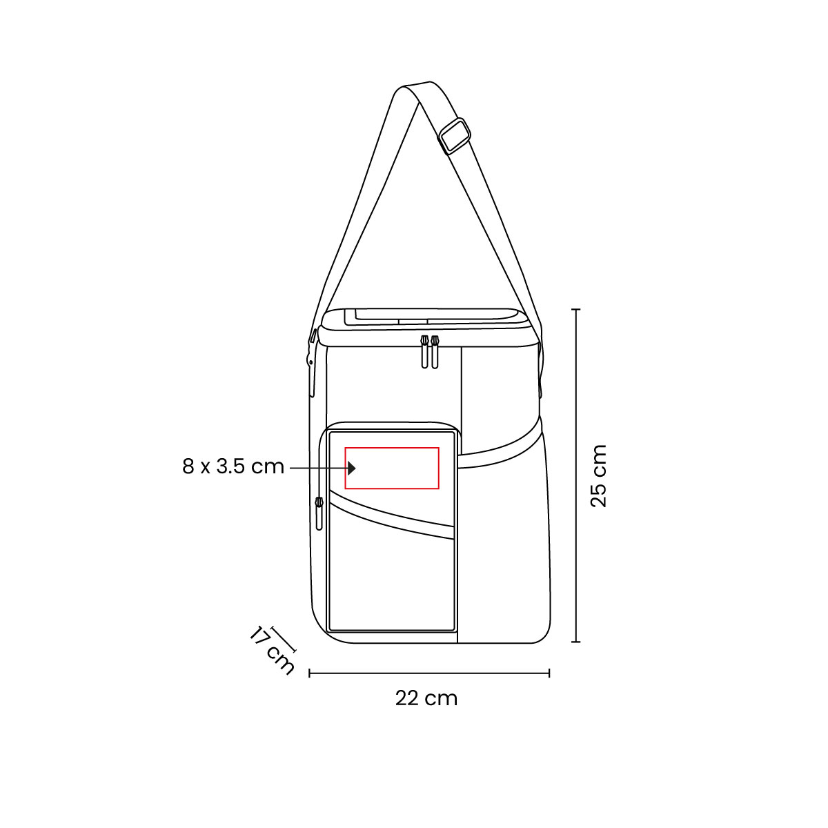 Interior plastificado impermeable. Bolsa frontal con cierre y bolsillo lateral y frontal de malla. Bolsa principal con cierre y ventana superior para fácil acceso al interior. Incluye correa ajustable. Capacidad para 6 latas. – SIN 232