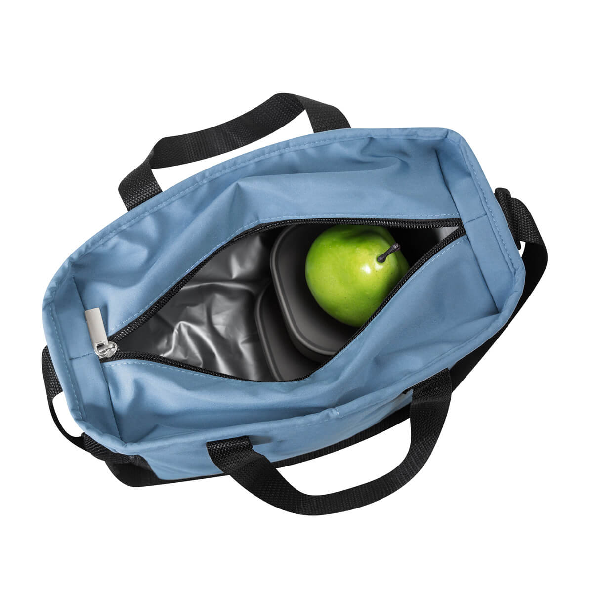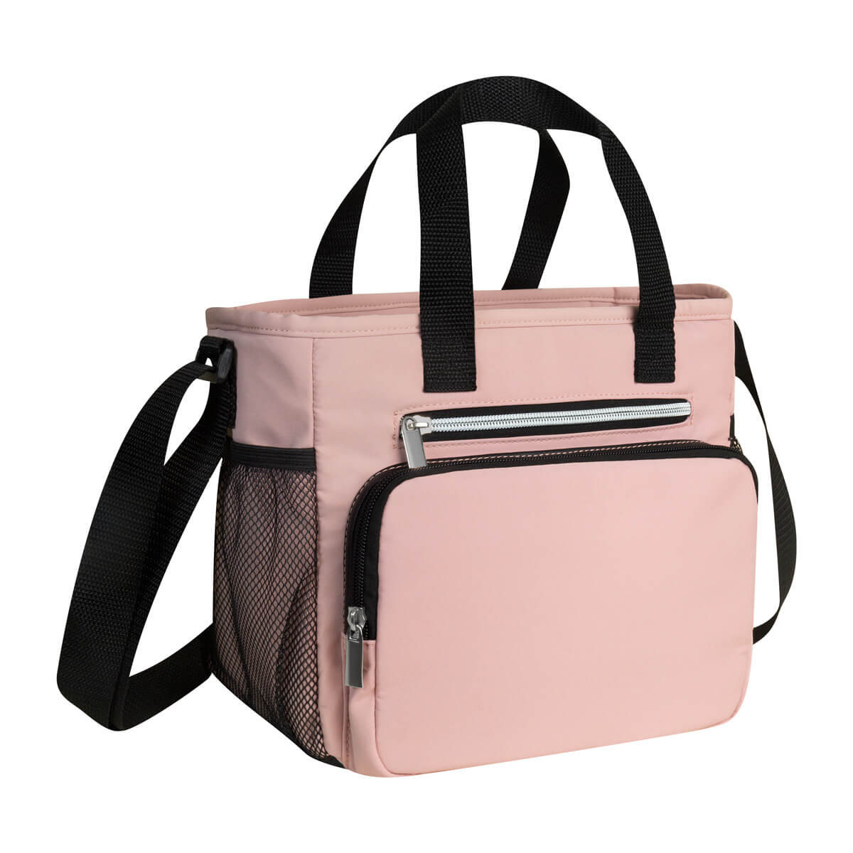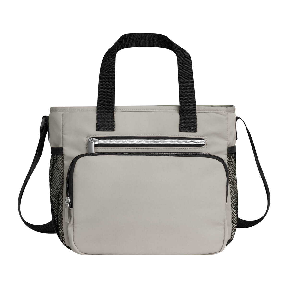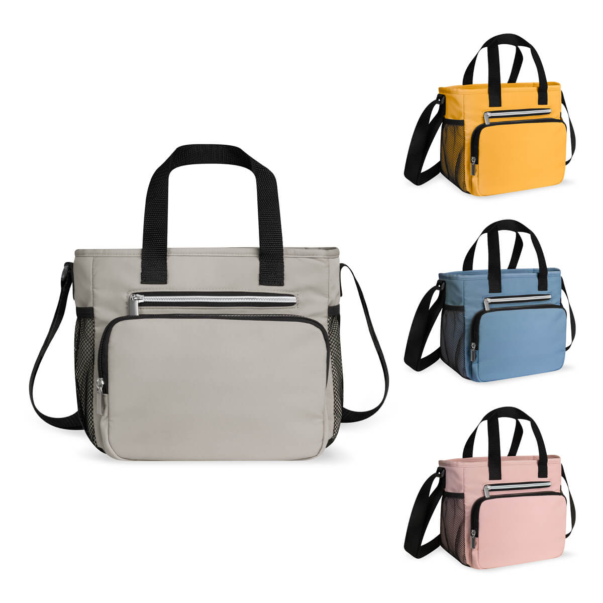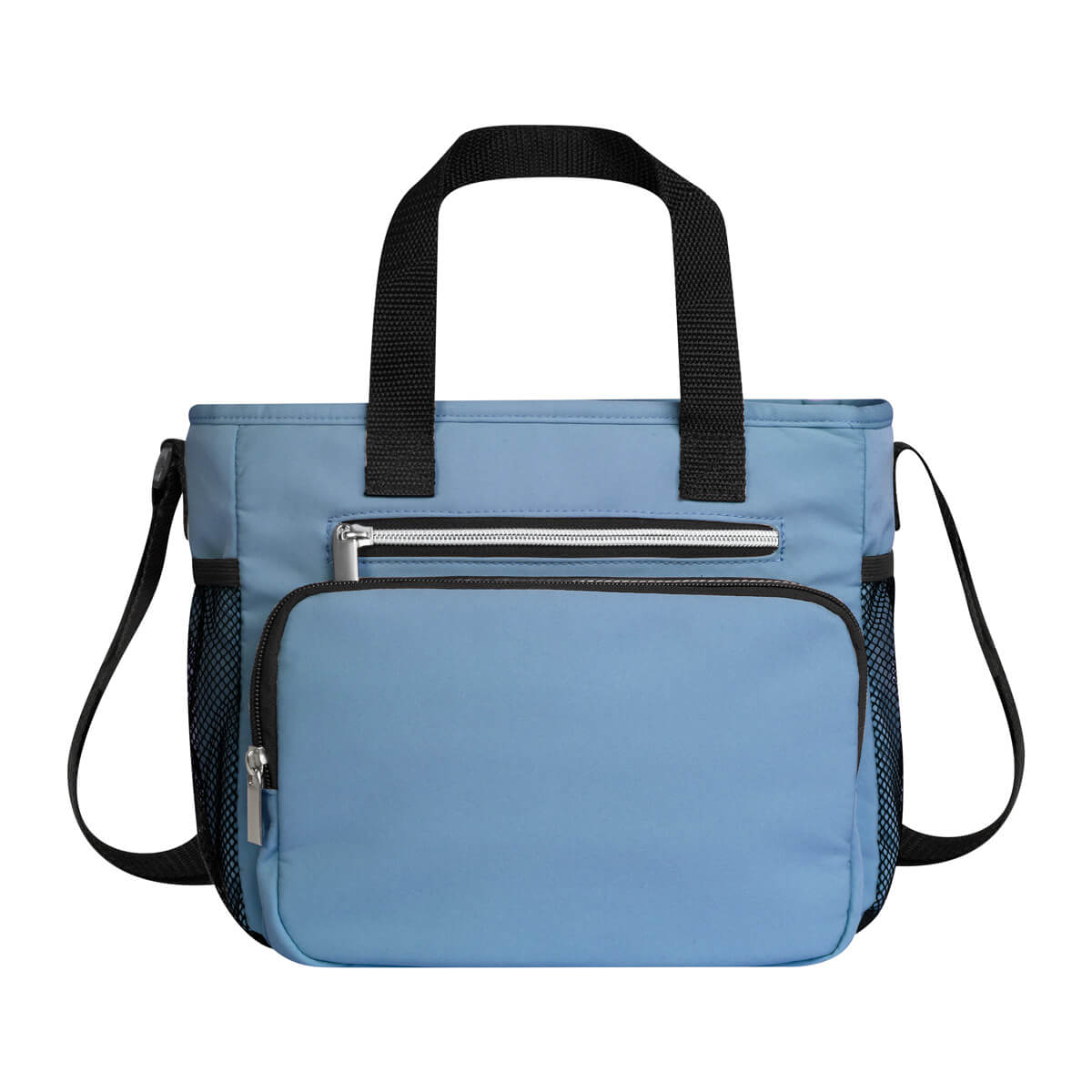 Hielera con interior plastificado impermeable. Bolsa principal con cierre, doble bolsillo frontal y dos bolsillos laterales de malla. Su práctico diseño le brinda comodidad y practicidad para almacenar alimentos y bebidas. Incluye correa para hombro ajustable. Capacidad de 10 latas. – SIN 566
