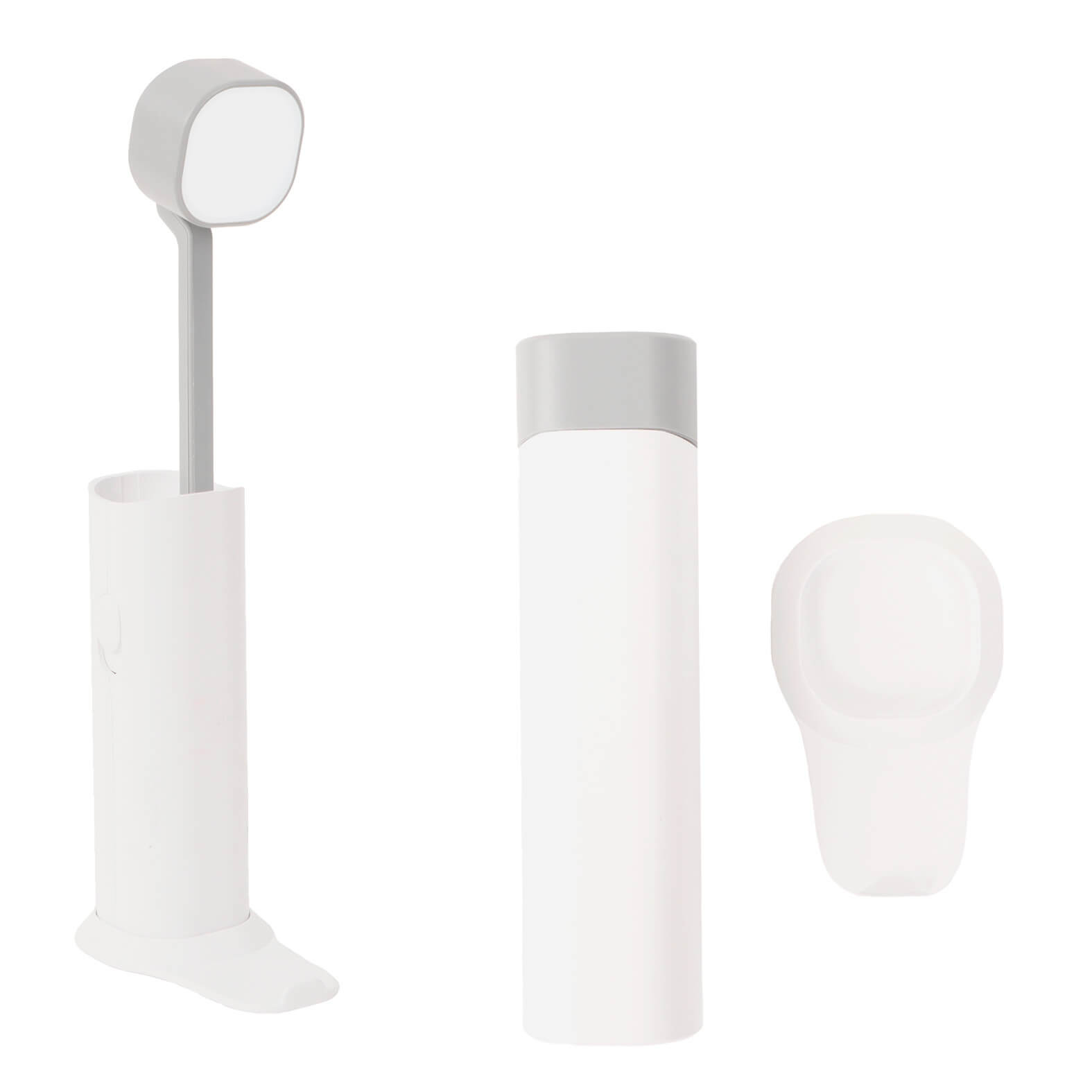Lámpara recargable de luz LED con 3 niveles de intensidad, plegable, base para soporte de celular y power bank.