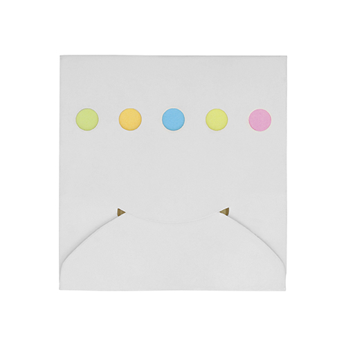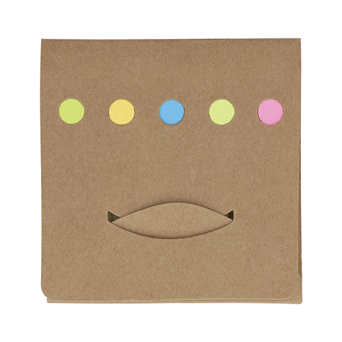 Sobre de cartón con notas y banderas adheribles.