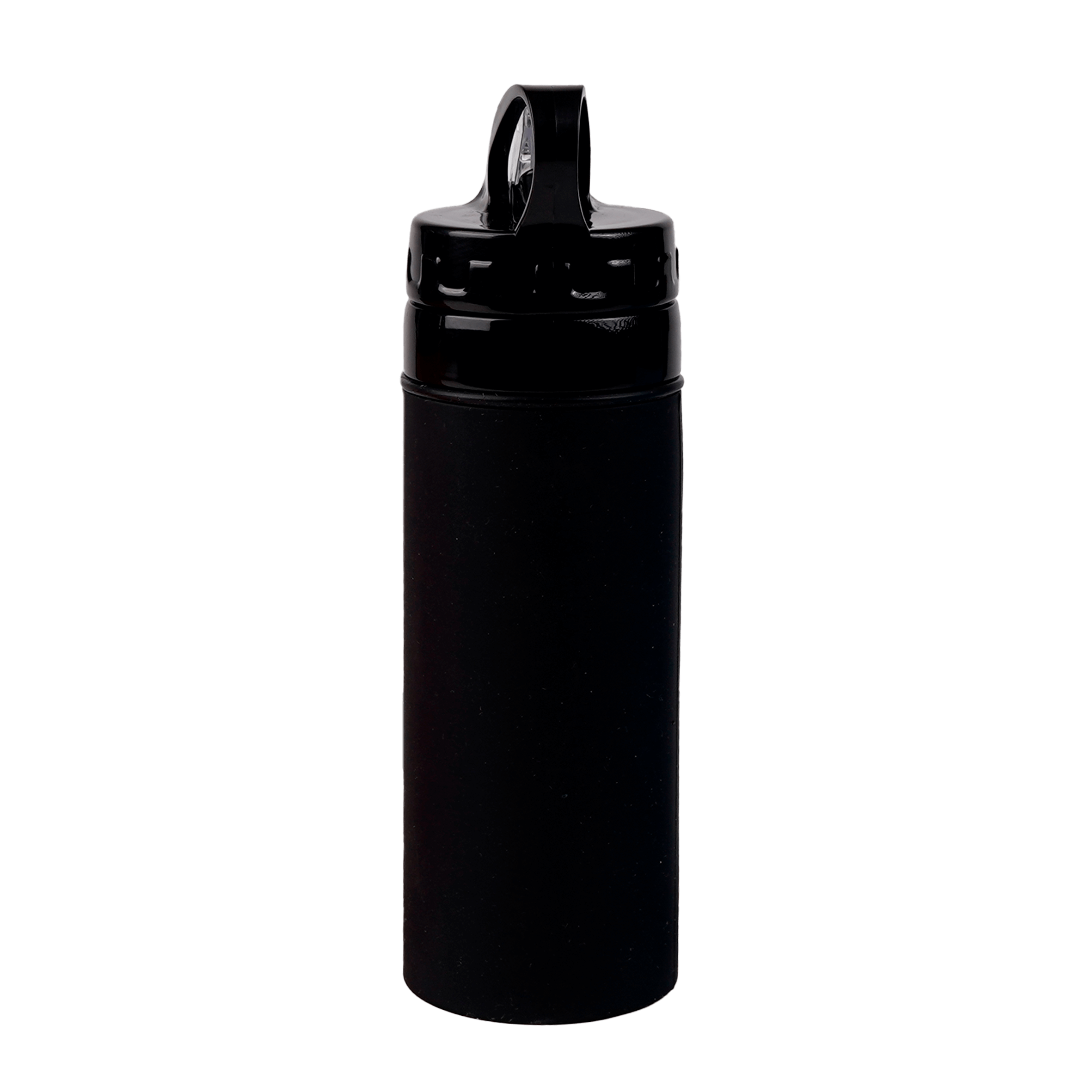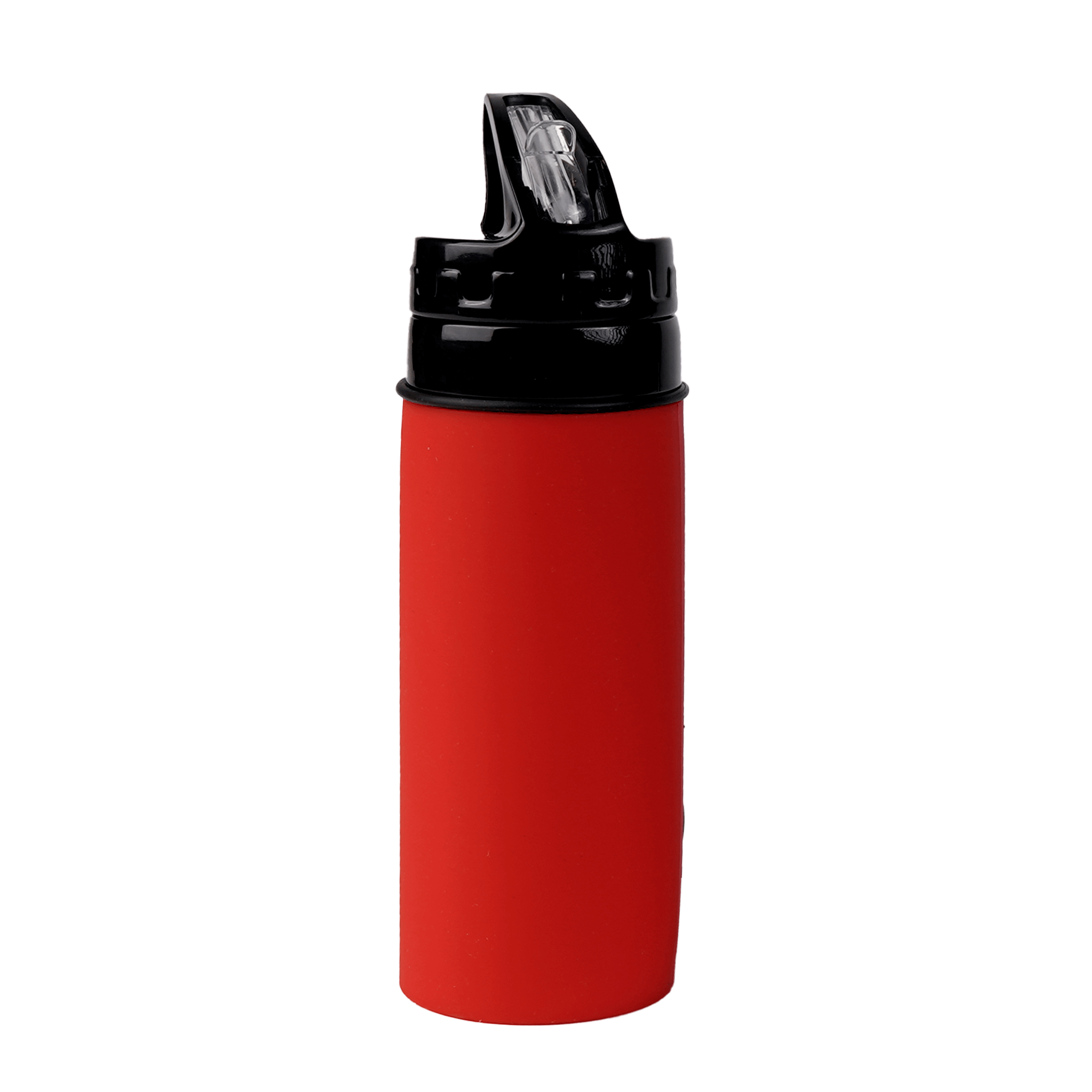 Cilindro de silicón, con tapa enroscable, boquilla abatible, agarradera en la parte superior y asa de silicón removible.