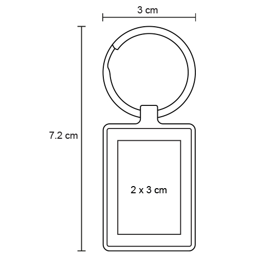 Llavero metálico de placa solida en forma rectangular con arillo reforzado.