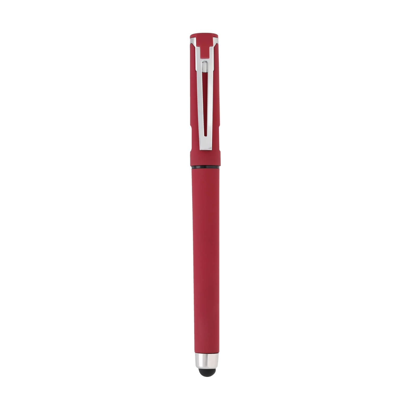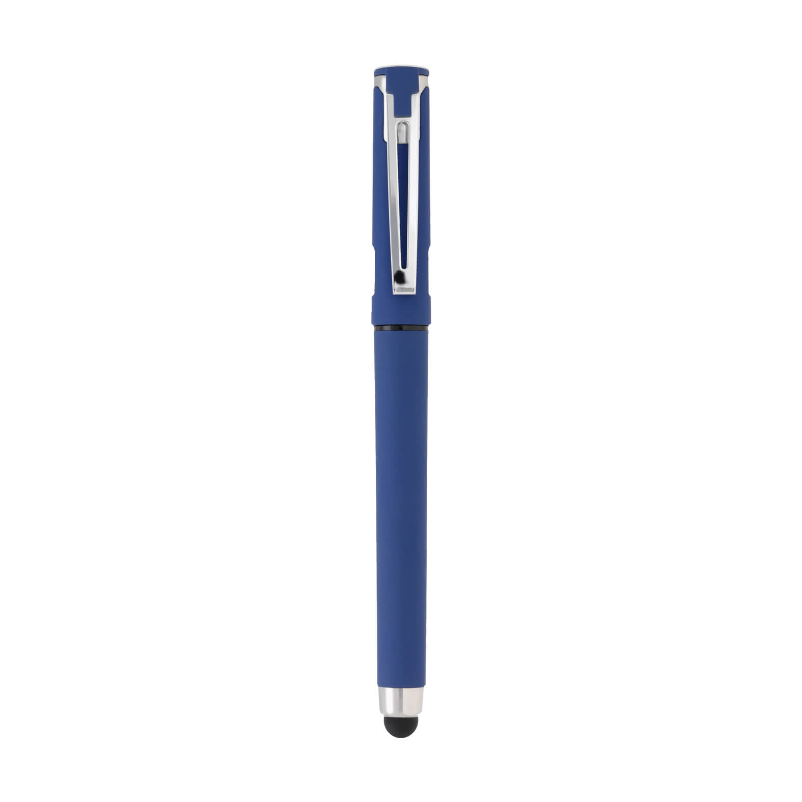 Bolígrafo de plástico acabado rubber, tinta de gel y goma touchs creen. Incluye tapa con clip y espacio que sirve como soporte para celular.