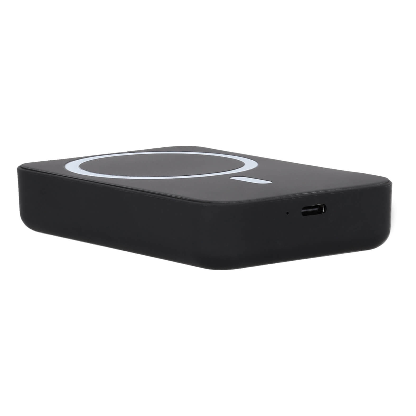 Power Bank wireless de acabado rubber con 3,000 mAh, círculo magnético y cable de carga tipo C. (Compatible con dispositivos con tecnología Qi).