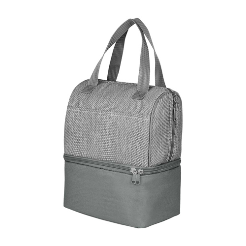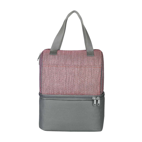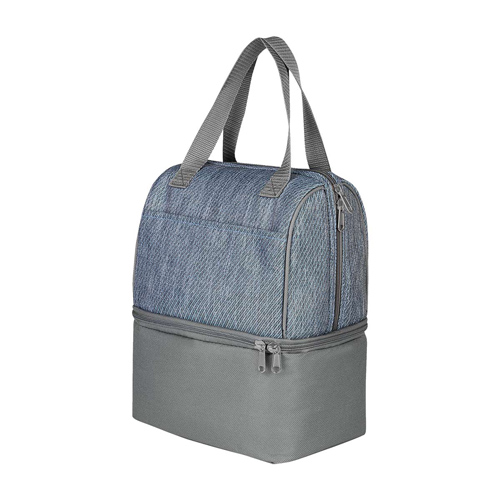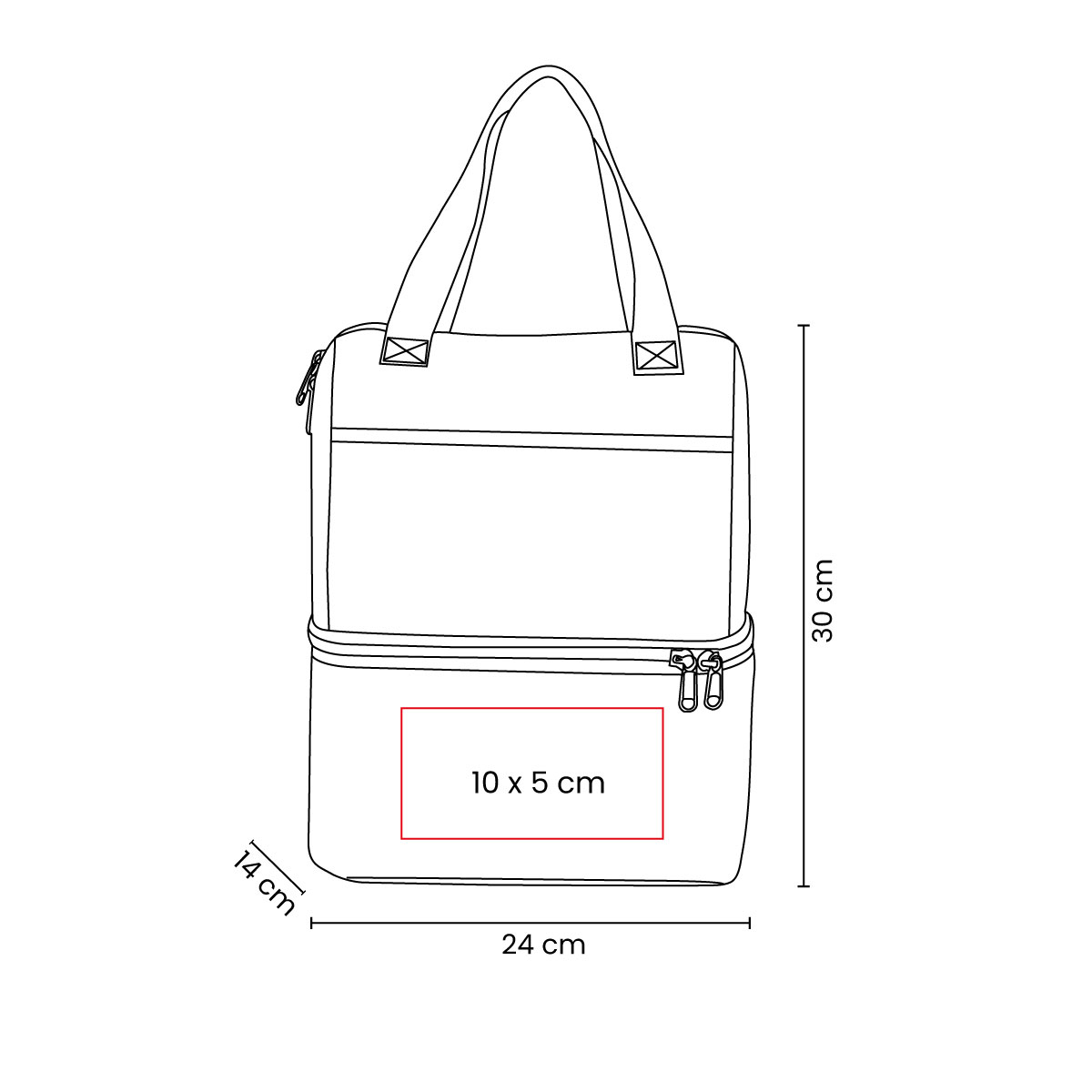 Interior plastificado. Compartimento superior e inferior con cierre y bolsillo frontal. Cuenta con 2 asas de agarre superior. Capacidad para 12 latas. – SIN 263
