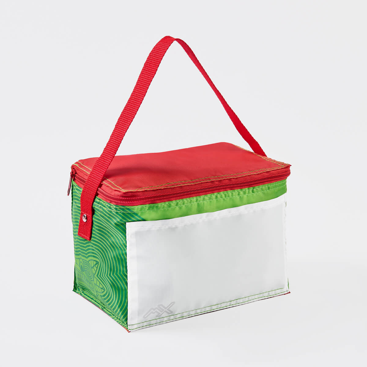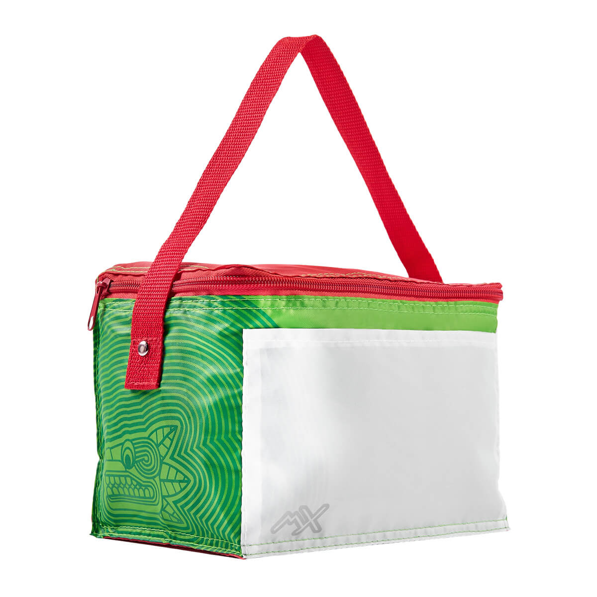 Lonchera con Interior plastificado impermeable. Bolsa principal con cierre, cuenta con una bolsa frontal sencilla. Incluye correa ajustable. Capacidad para 6 latas. – SOC 091