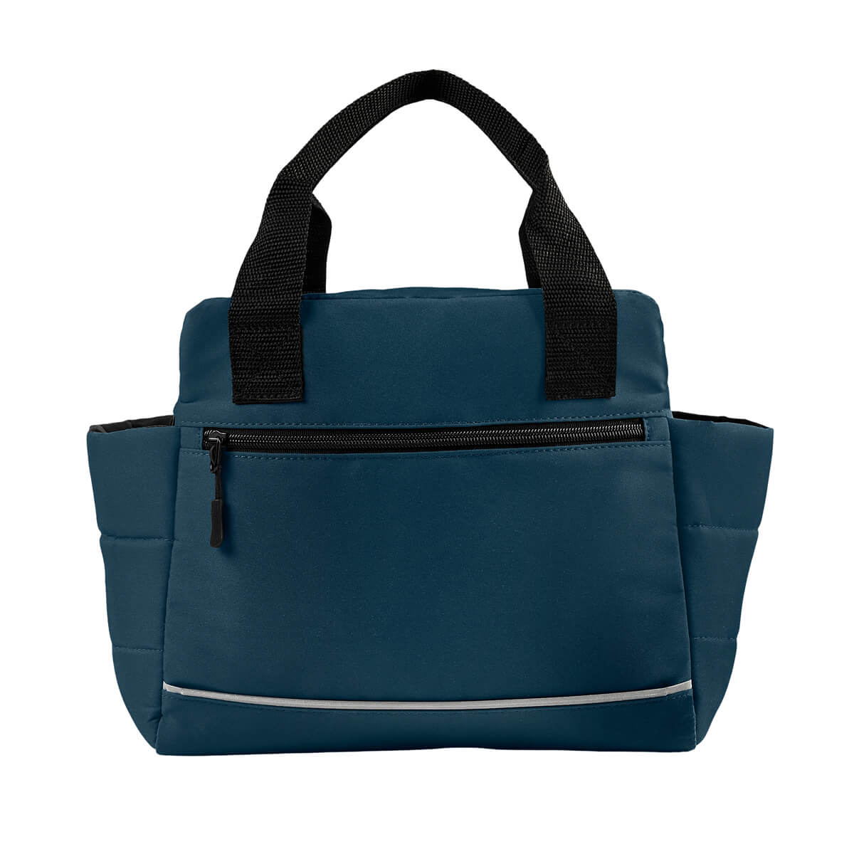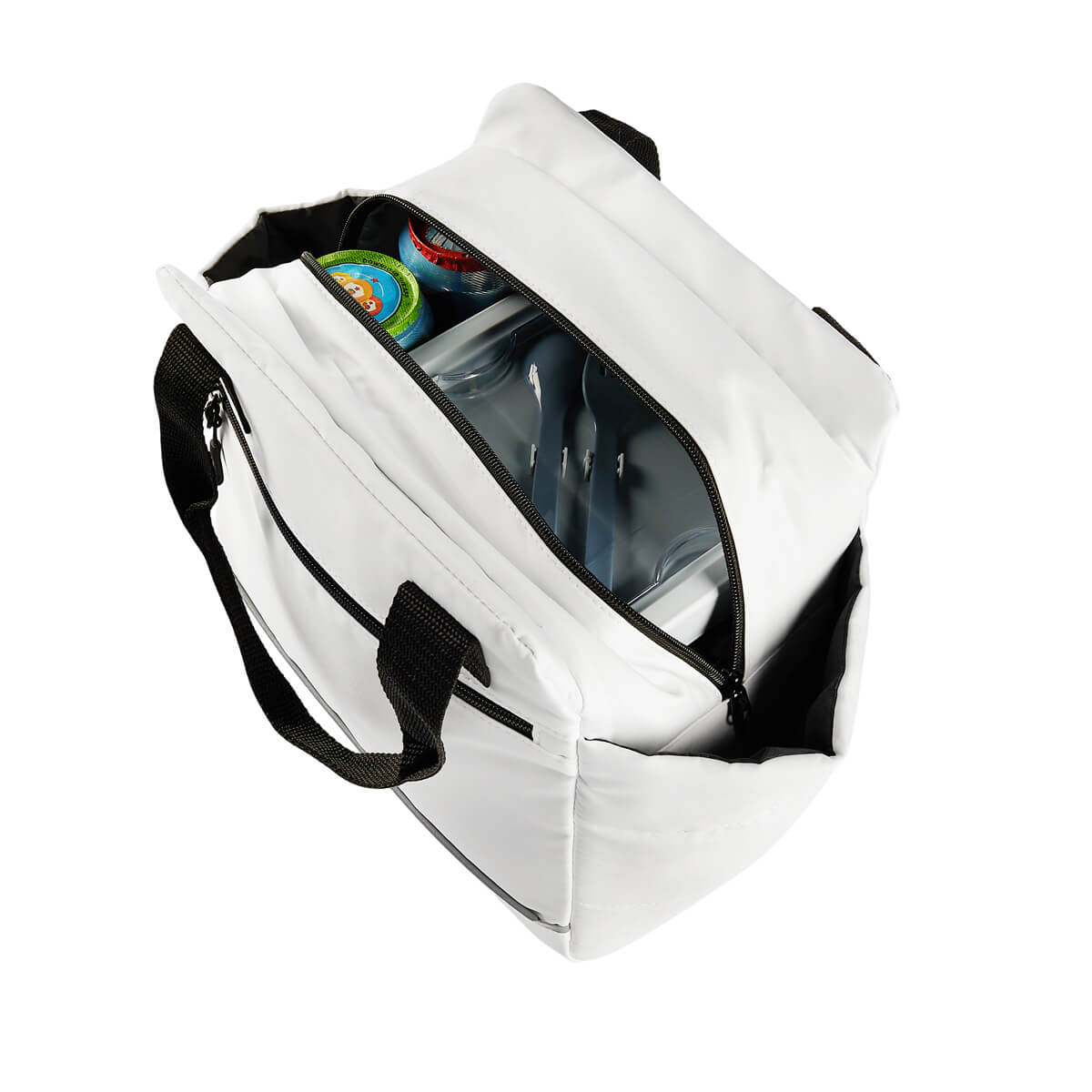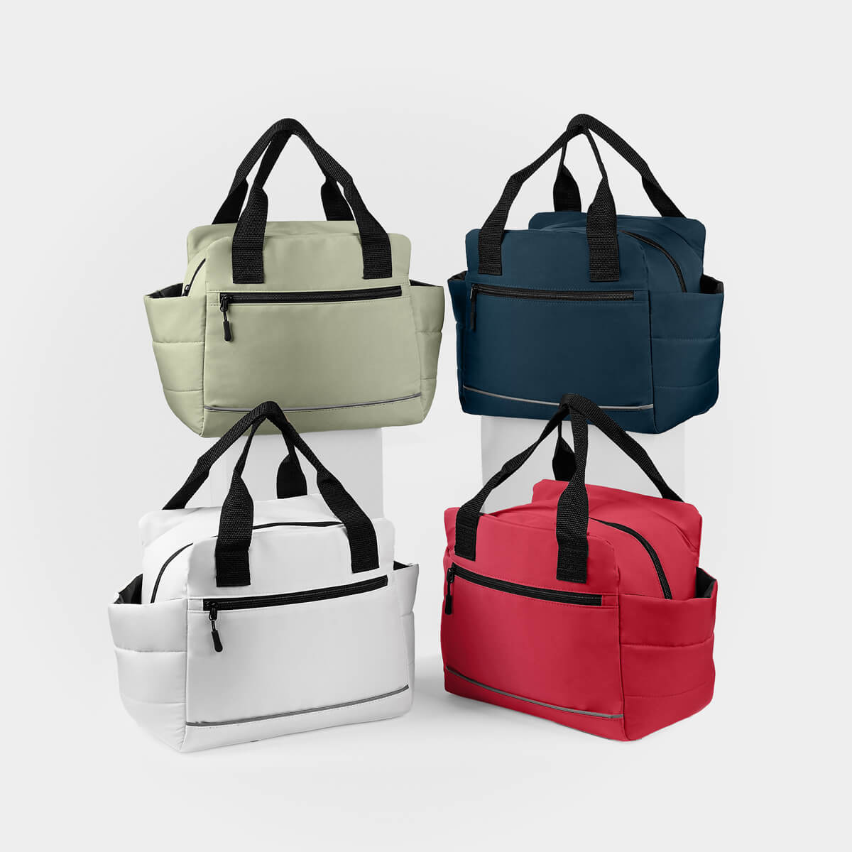 Lonchera con interior plastificado. Compartimento principal con cierre, dos bolsillos laterales y un bolsillo frontal también con cierre, ideal para llevar contigo pequeños snacks. Adicional, agregar un detalle reflejante en la parte frontal, lo que aporta un toque de diseño. Ideal para escuela u oficina, lleva tus alimentos con estilo y de forma segura. Capacidad 12 latas. – SIN 580