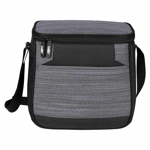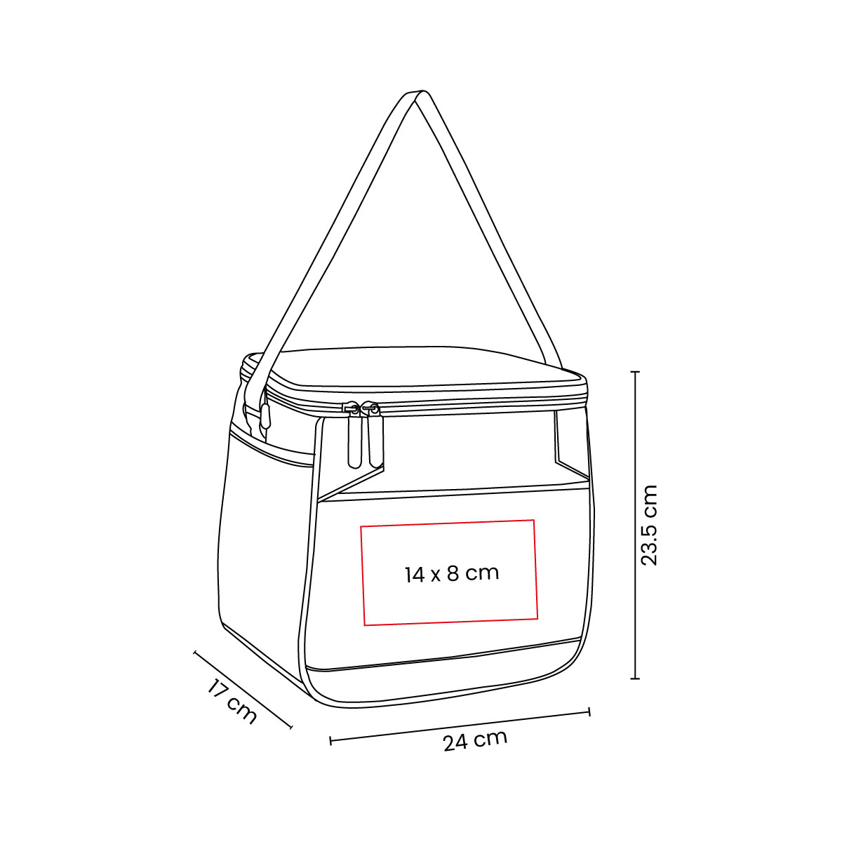 Interior plastificado. Bolsa frontal, bolsa principal con cierre, bolsa lateral de red y correa ajustable. Capacidad para 12 latas. – SIN 262