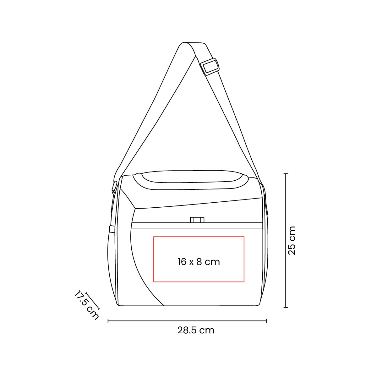 Interior metalizado. Bolsa principal y frontal con cierre. Bolsa lateral de malla y correa ajustable. Capacidad para 16 latas. – SIN 225
