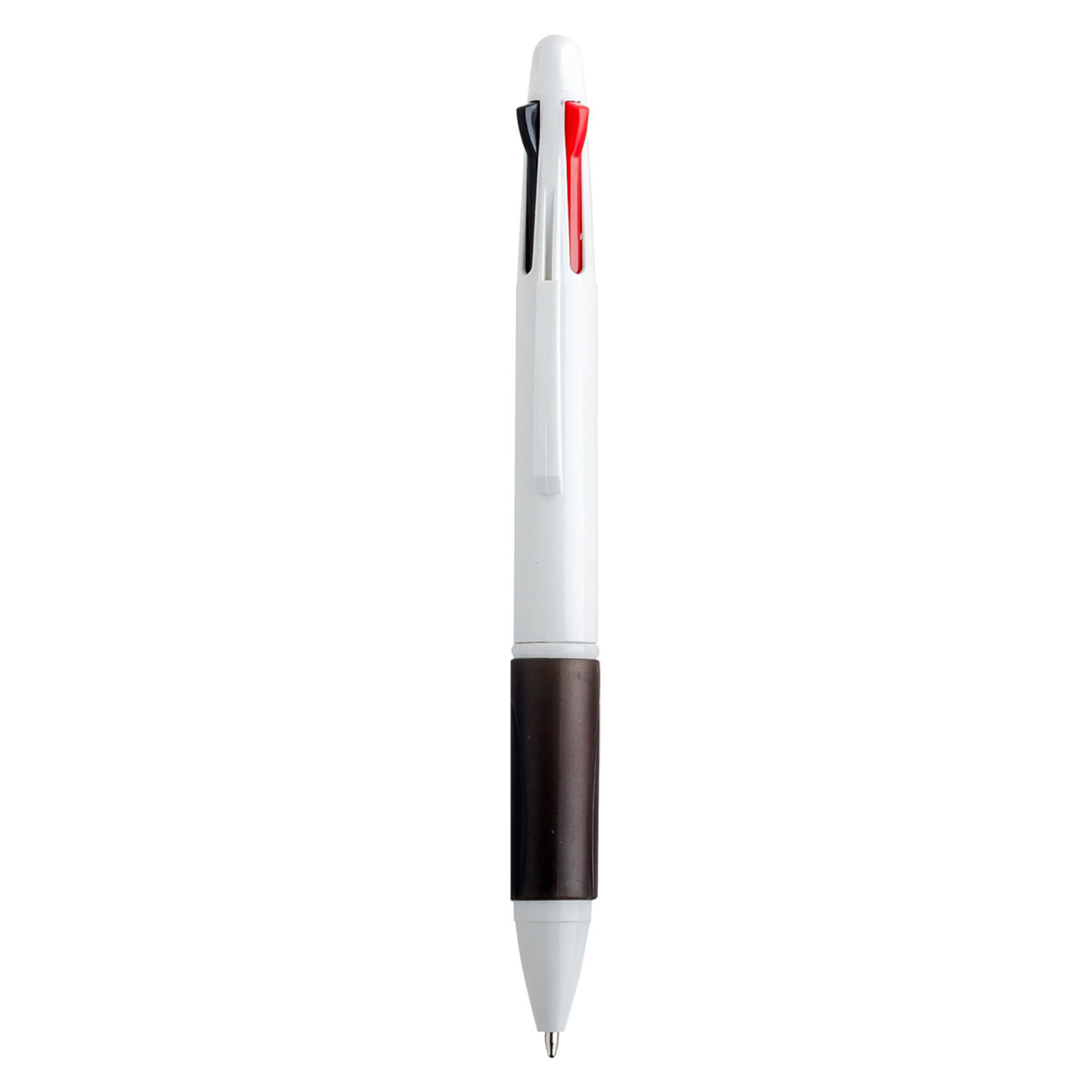 Bolígrafo de plástico con 4 tintas: rojo, negro, azul y verde.