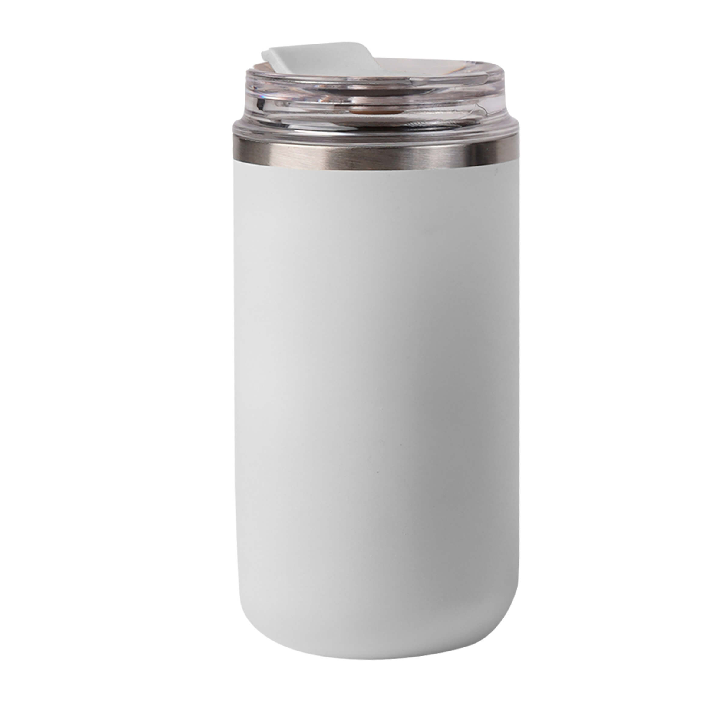 Termo con doble pared de acero inoxidable con acabado plastic painting y tapa enroscable con boquilla de silicón.