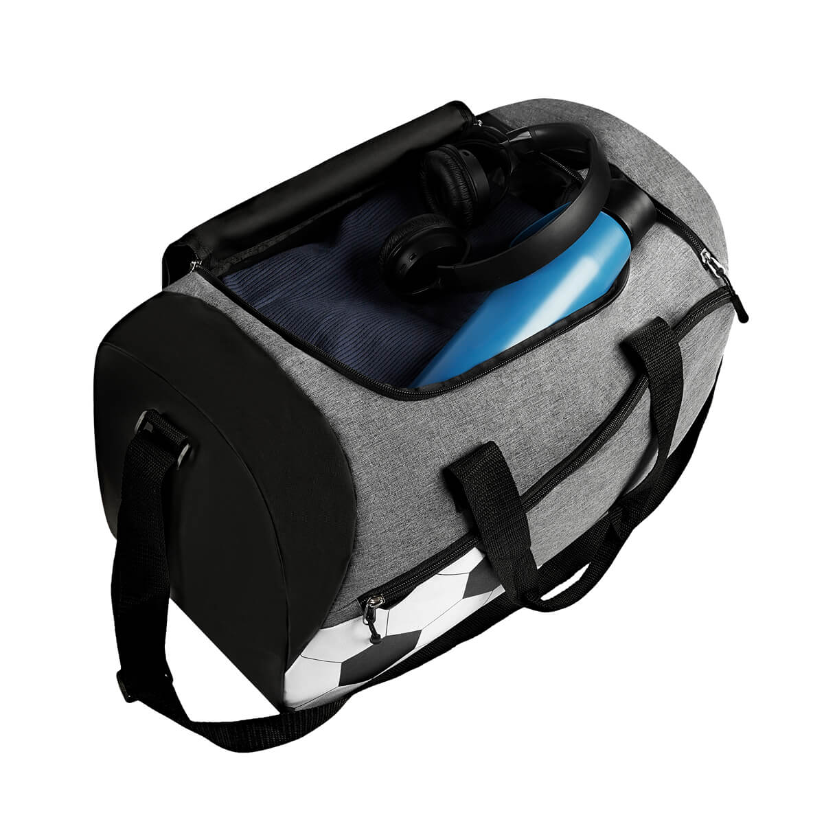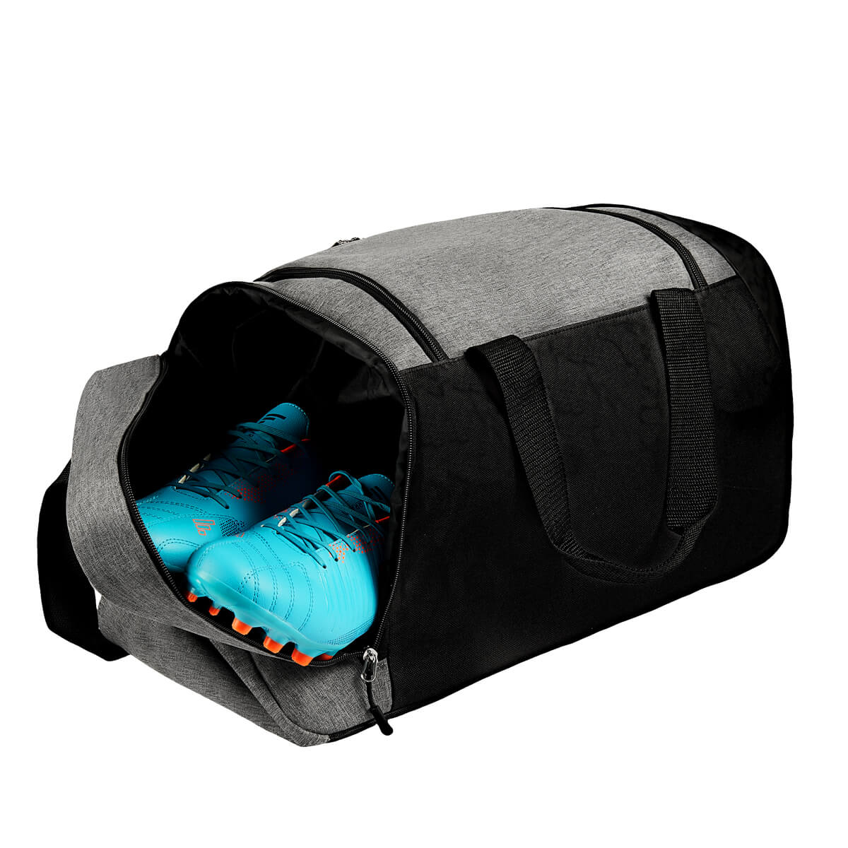 Maleta deportiva. Compartimento principal con cierre y un bolsillo adicional en la parte frontal. Además, cuenta con un compartimento lateral para calzado. Incluye correa ajustable para hombro y asas de agarre superior. – SOC 094