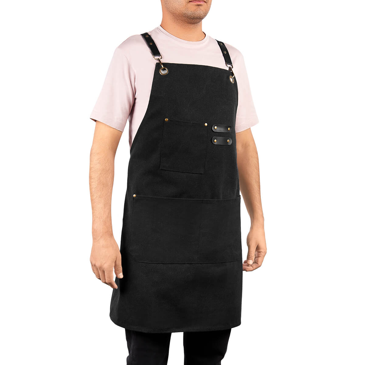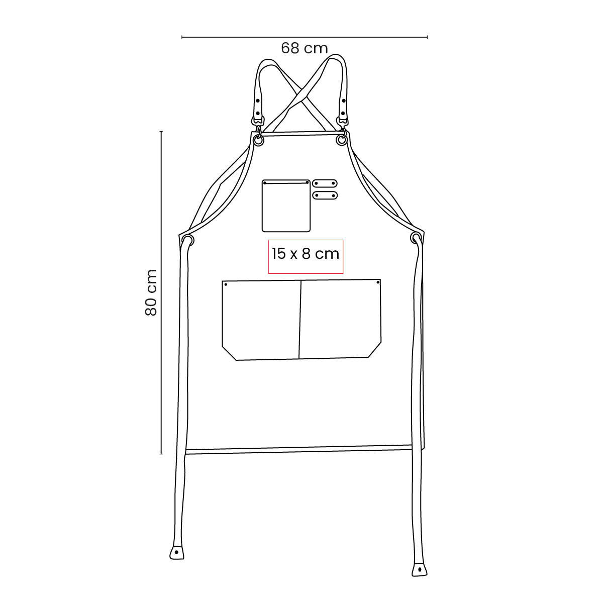 Incluye tres bolsillos frontales: uno en la parte superior, ideal para objetos pequeños, y dos en la parte inferior, perfectos para herramientas, utensilios o accesorios. Cuenta con tirantes ajustables con hebillas metálicas y remaches que aportan mayor resistencia y un toque de estilo. Su diseño cruzado en la espalda ofrece mayor comodidad. Elaborado para entornos de trabajo exigentes, desde cocinas industriales hasta talleres o espacios creativos. – KTC 977