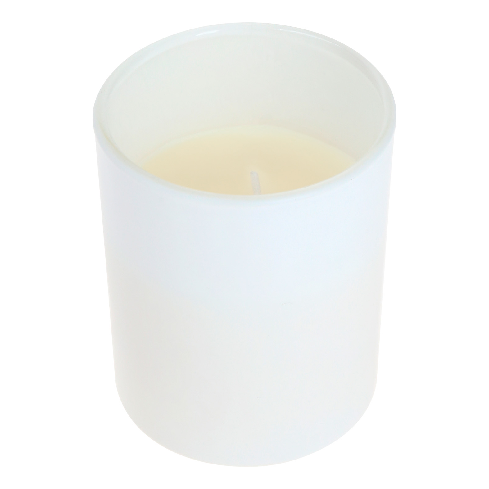 Vela con olor a gardenia con envase de vidrio y acabado mate.