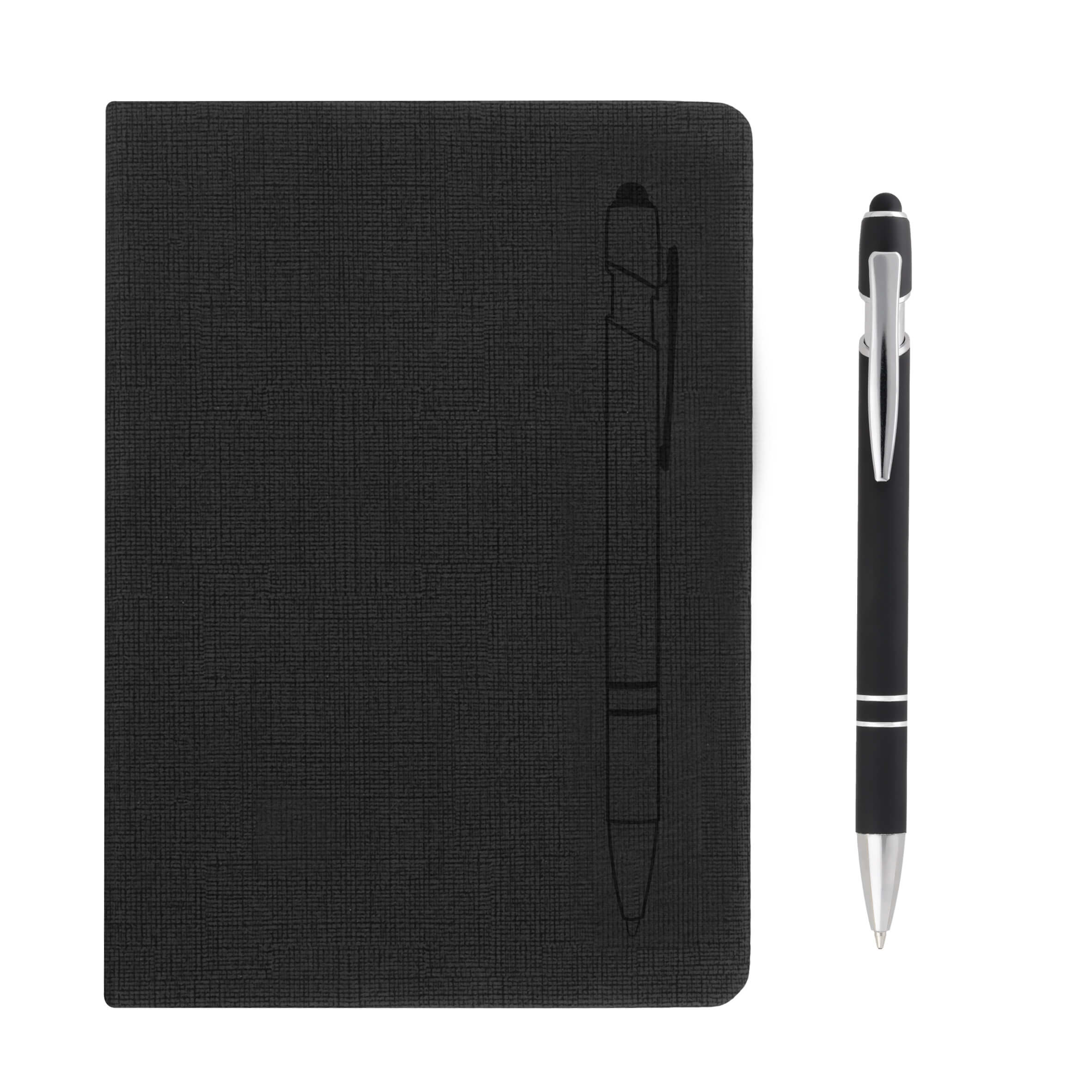 Set de libreta y bolígrafo metálico con acabado rubber. Libreta con caratula magnética, 82 hojas rayadas y separador.