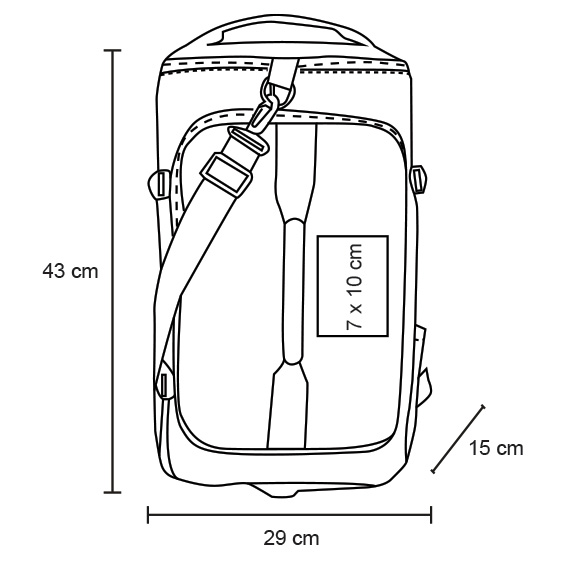 Maleta que se convierte en mochila, incluye: 1 compartimento principal de cierre con 2 compartimentos internos, 1 compartimento frontal, 1 compartimento trasero, 2 bolsas laterales, tirantes acojinados, zapatera, correa ajustable y asa superior.