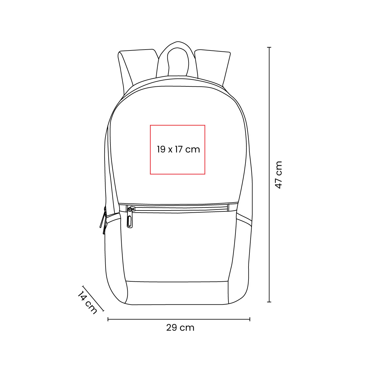 Bolsa principal con cierre. Compartimento para laptop de 16″. Bolsa frontal con cierre. 2 bolsas laterales de red. Tirantes acojinados y ajustables. Incluye asa de agarre superior. – SIN 403