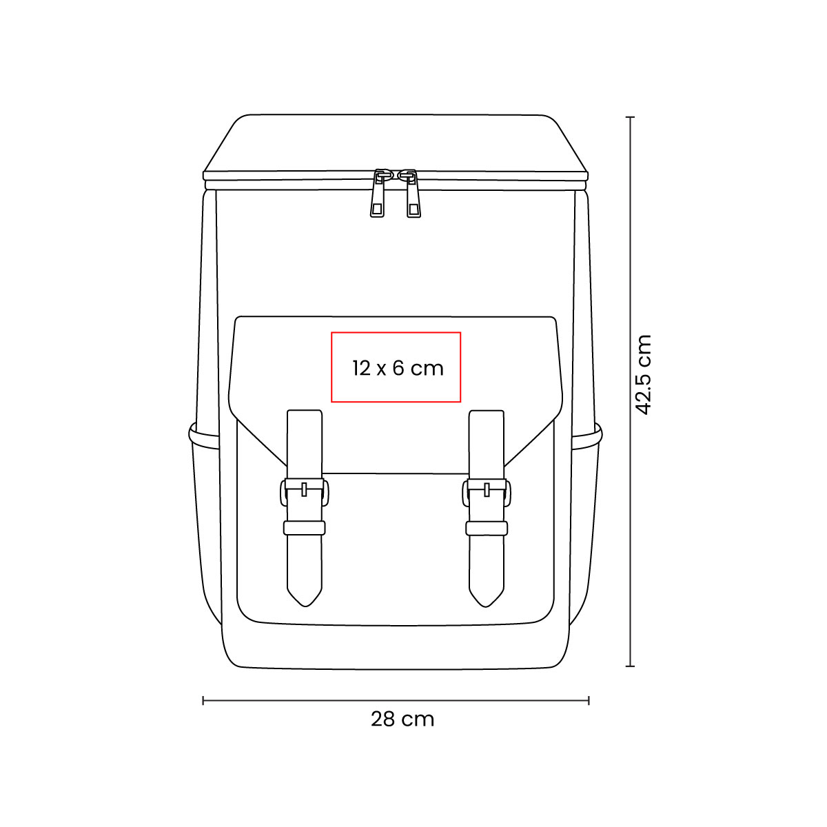 Interior plastificado. Compartimento interior removible impermeable. Bolsa principal, bolsa frontal y 2 bolsillos laterales. Broches frontales de hebilla metálica. Incluye destapador metálico. Capacidad para 24 latas. – SIN 991