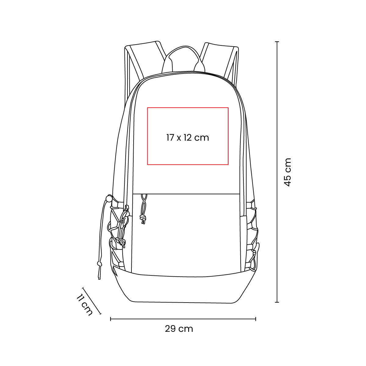 Bolsa principal y frontal con cierre. Bolsas laterales de elástico con jareta. Tirantes ajustables con tira reflejante. Incluye asa de agarre superior. Con capacidad para laptop de hasta 16″. – SIN 348