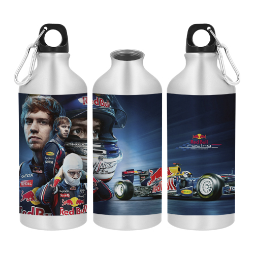 Botella de aluminio sublimable. Incluye gancho metálico.