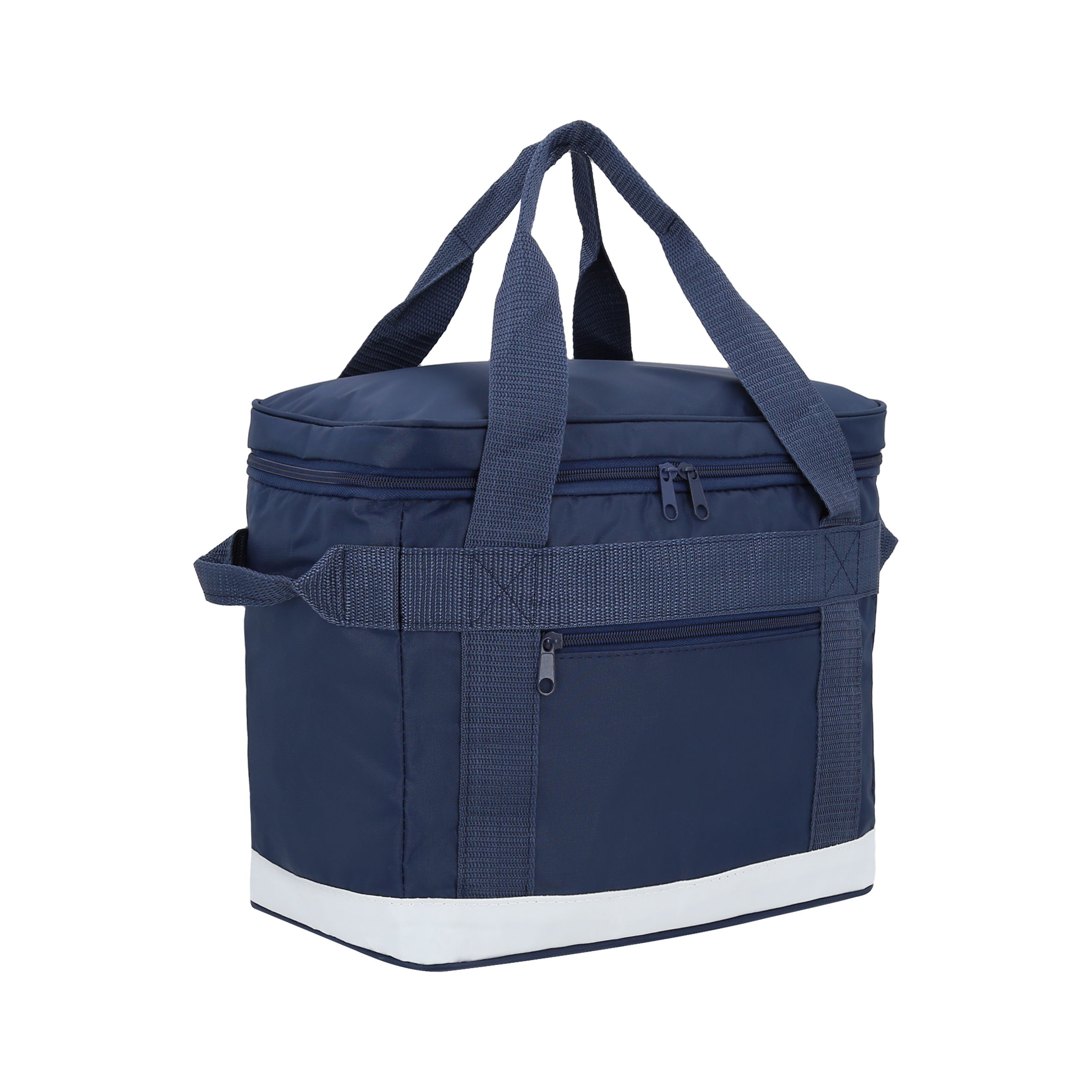 Hielera rectangular con cierre, doble bolsa en la tapa, 1 bolsa frontal y doble asa.