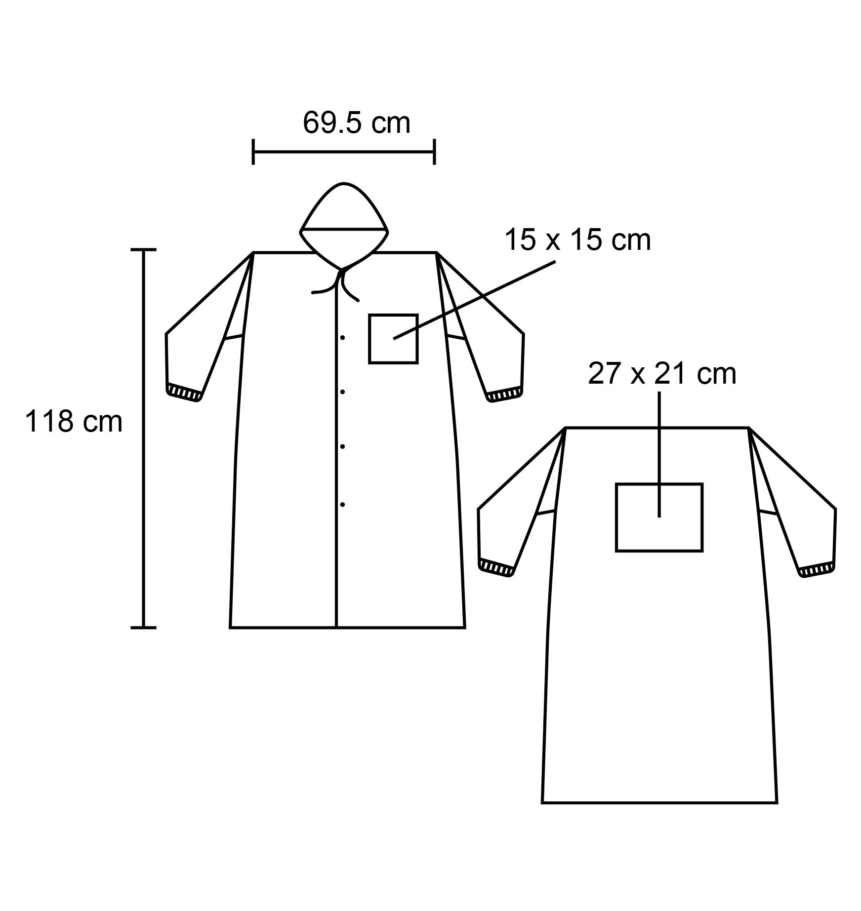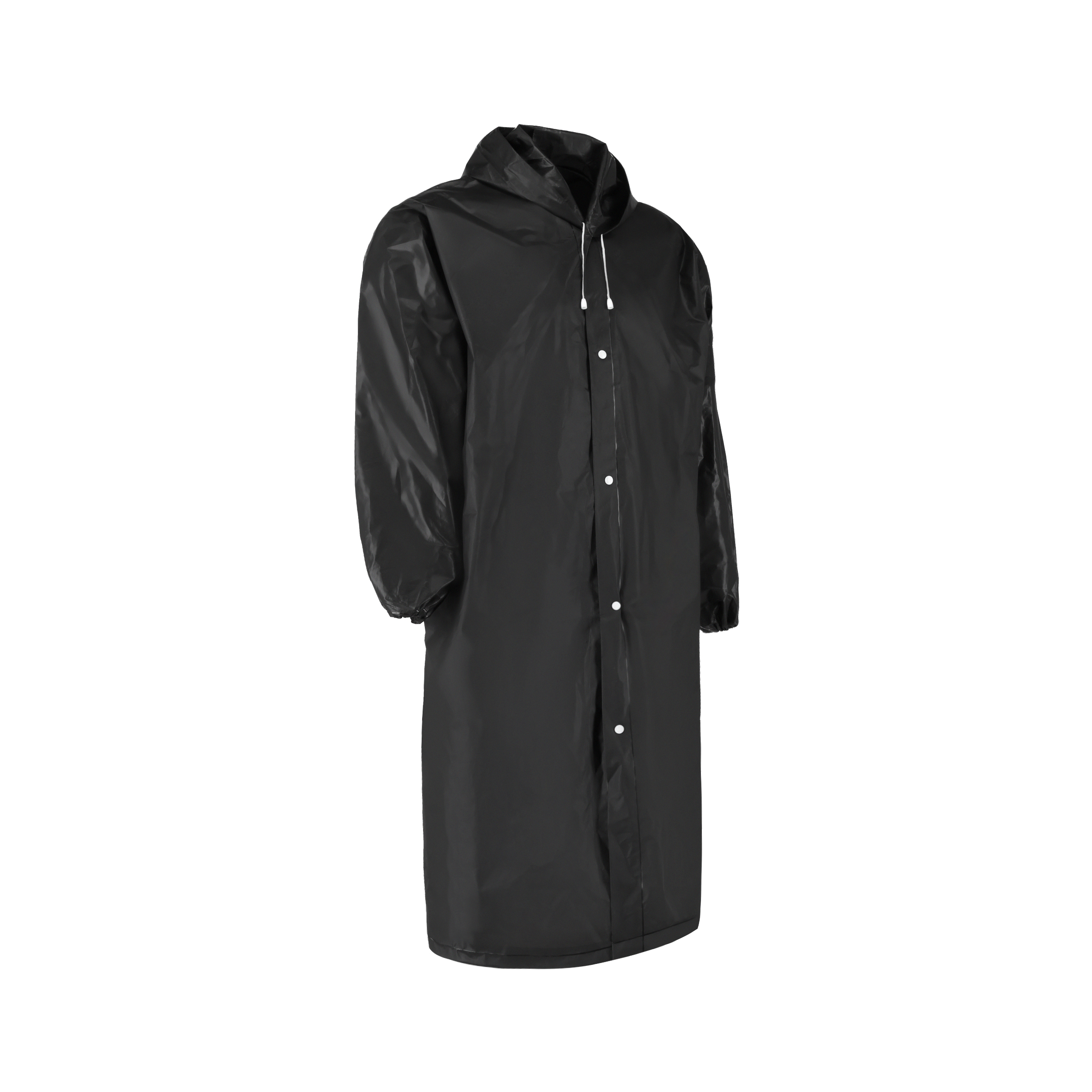 Impermeable de plástico con botones, capucha y resortes en las mangas. (Espesor de 0.12 mm.)
