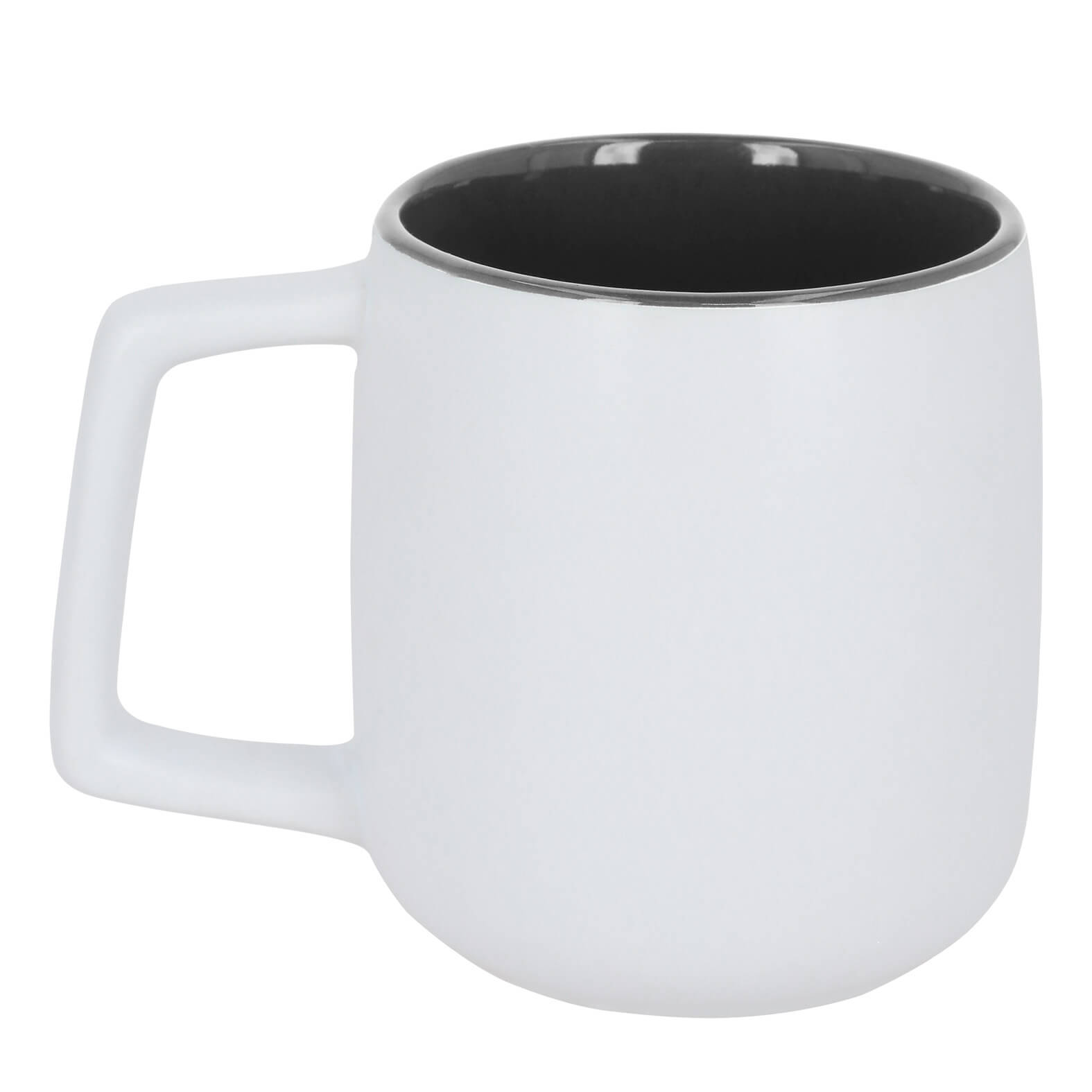 Taza de cerámica con acabado mate y asa rectangular.