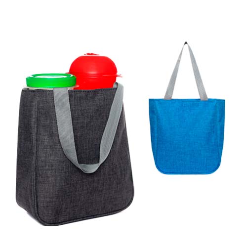 Lonchera de un compartimento con cierre, interior satinado y fuelle.