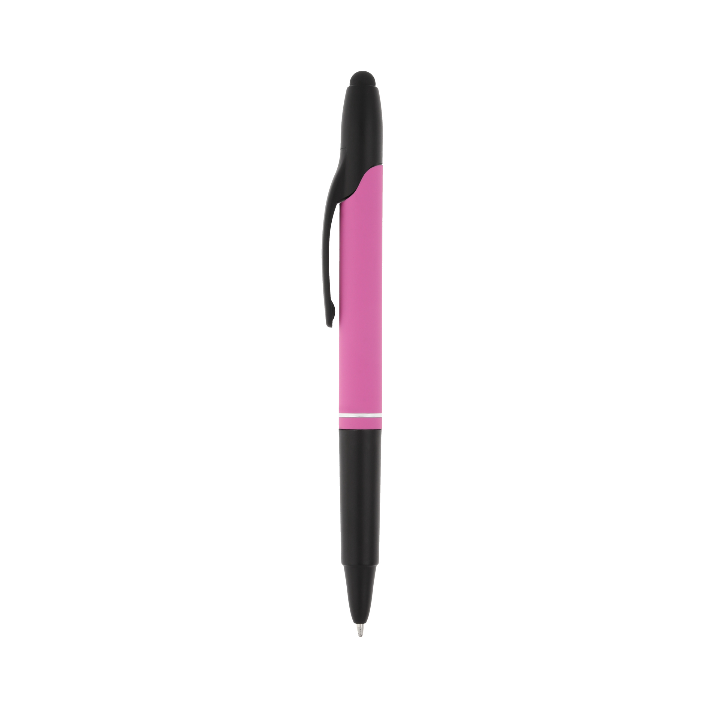 Bolígrafo con acabado rubber, clip de plástico, goma touch screen, mecanismo retráctil y marca textos.
