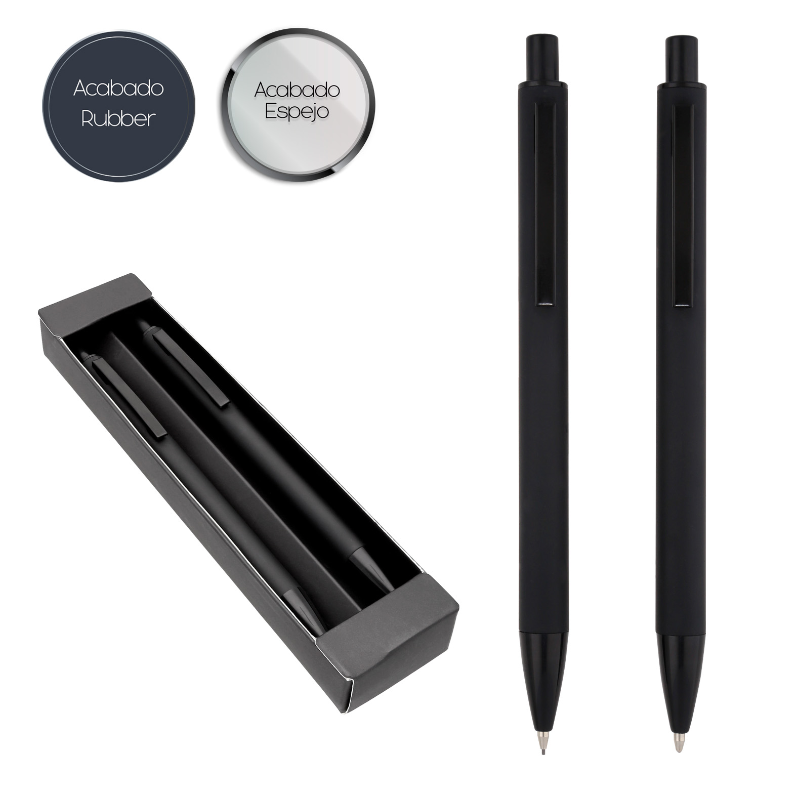 Bolígrafo y lapicero metálico en acabado rubber con clip y mecanismo de click. Incluye estuche.