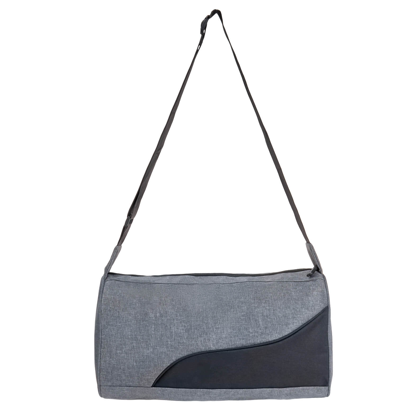Maleta deportiva de poliéster con compartimento principal y correa ajustable.