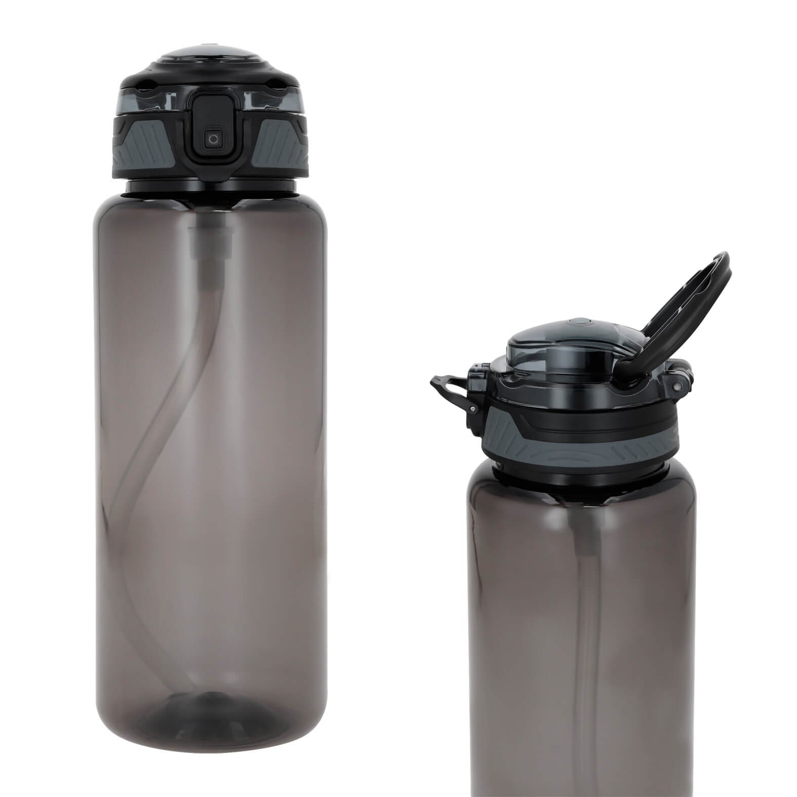 Cilindro de plástico con tapa enroscable, broche de seguridad, popote retractil y asa. (El stock de la base se maneja por separado). Medidas del empaque de la base: 32 piezas por caja.