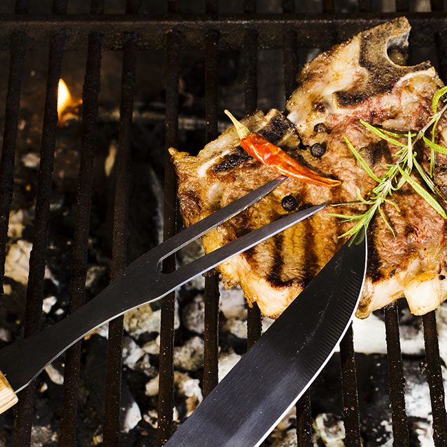• Estuche completo para asados, practico y facil de transportar gracias a su cierre y asas.