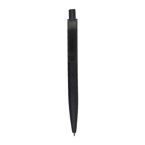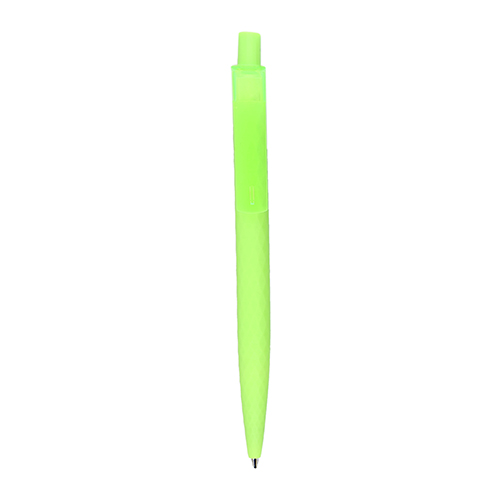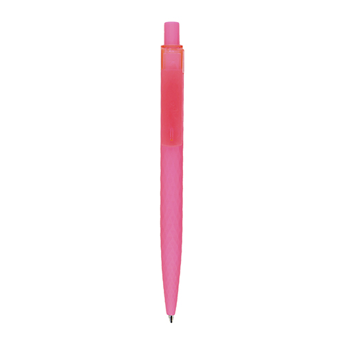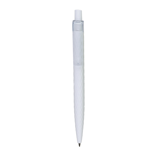 Bolígrafo de plástico con clip transparente y mecanismo de click.