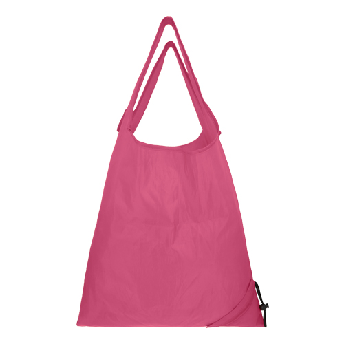 Bolsa de poliéster con funda plegable integrada, asas y correa ajustable.