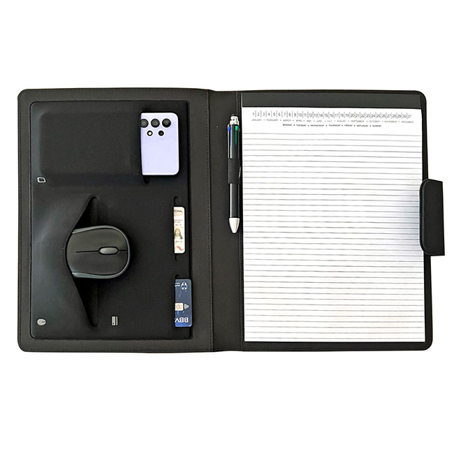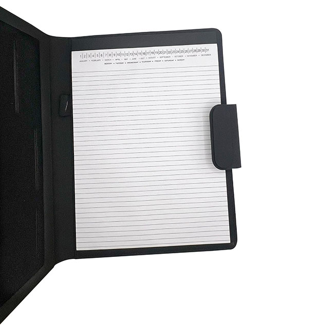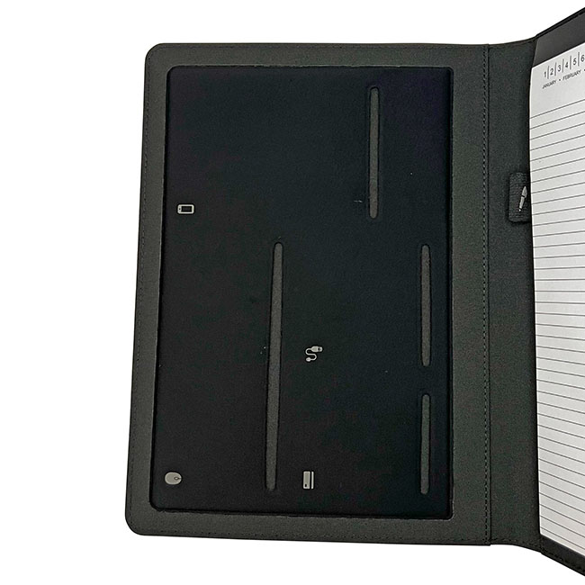 • Interior con portaboligrafos y compartimentos organizadores.