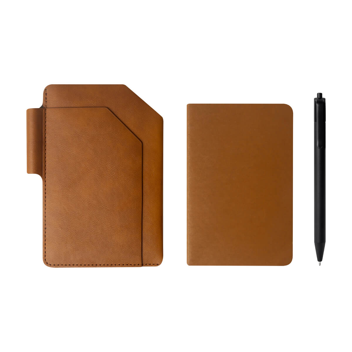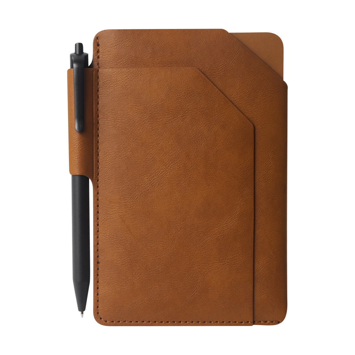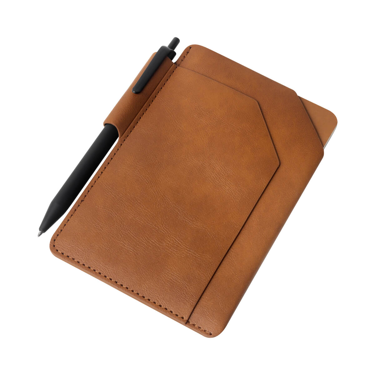 Funda de curpiel para pasaporte. Incluye un libreta de 32 hojas a raya, un bolígrafo de tinta negra y un práctico compartimento para tu pasaporte. Ideal para viajes y notas rápidas. – M 80124