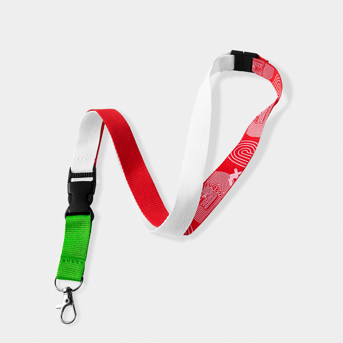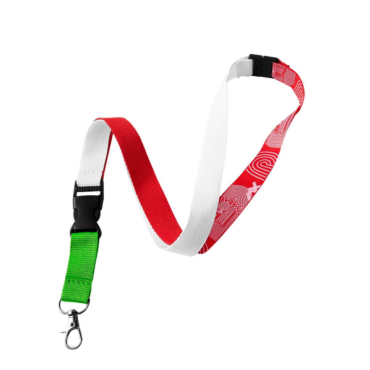 Portagafete tricolor con diseño inspirado en México. Incluye broche de seguridad, clip desmontable y gancho giratorio. Ideal para credenciales, llaves o tarjetas. Perfecto como souvenir o para eventos. – SOC 410
