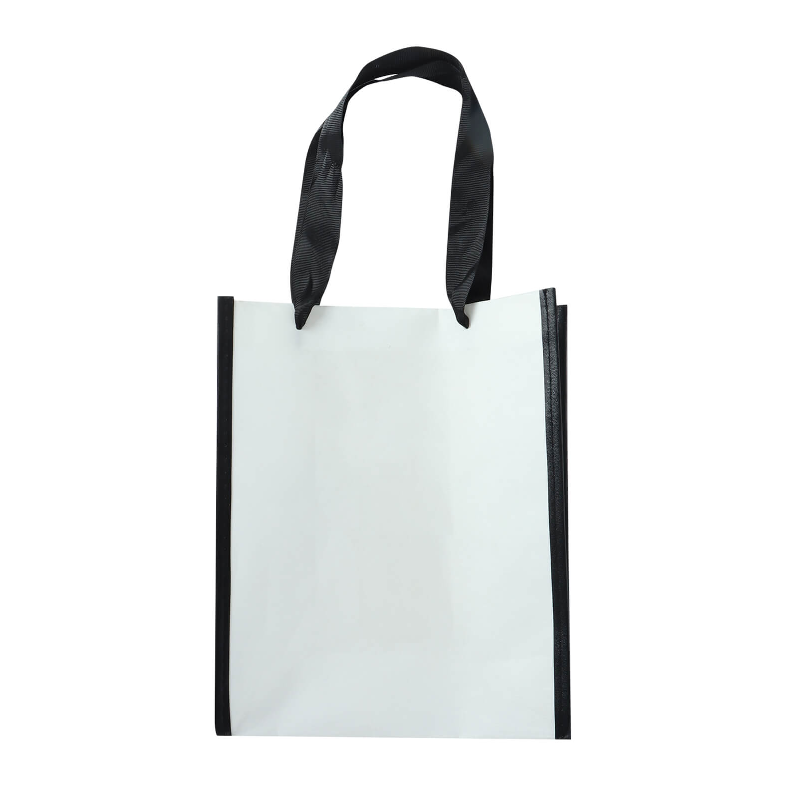 Bolsa ecológica de R-PET cosida y con asas de tela de 130 gr/m2.