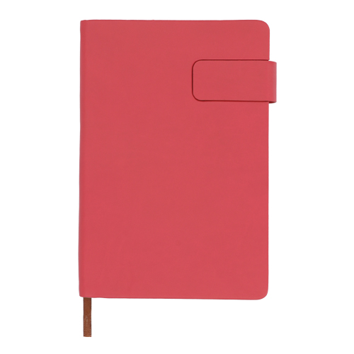 Libreta de poliuretano con broche magnético, 96 hojas rayadas y separador.