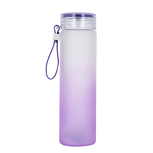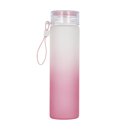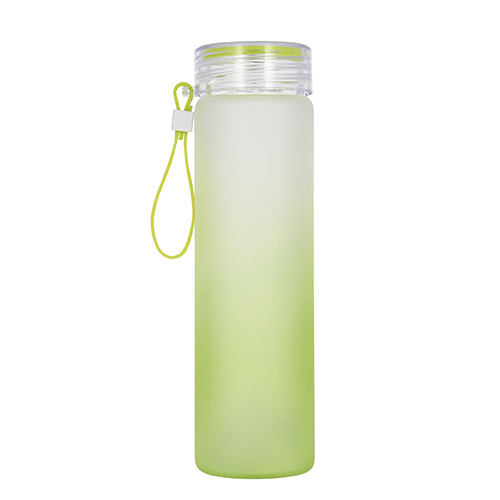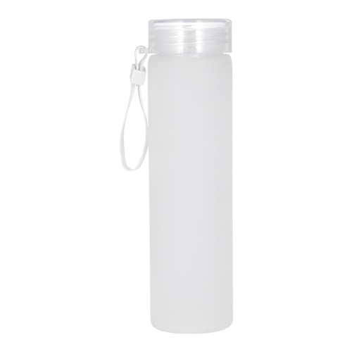 Botella de vidrio para agua con tapa tipo rosca y correa de silicón.