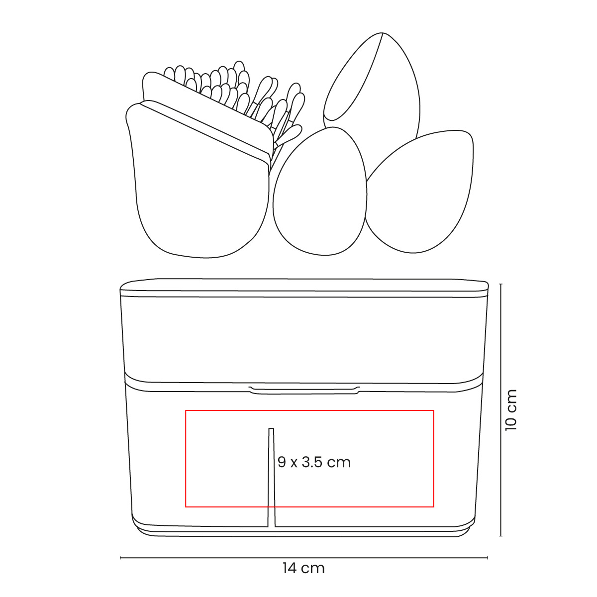 Estuche con set de aplicadores. Incluye 5 aplicadores de esponjas de látex perfectos para bases y correctores, 3 pufs de poliéster para polvos que garantizan un acabado uniforme y profesional, y 50 cotonetes de madera ideales para detalles y retoques. Su estuche esta diseñado para mantener todo organizado. – DAM 070