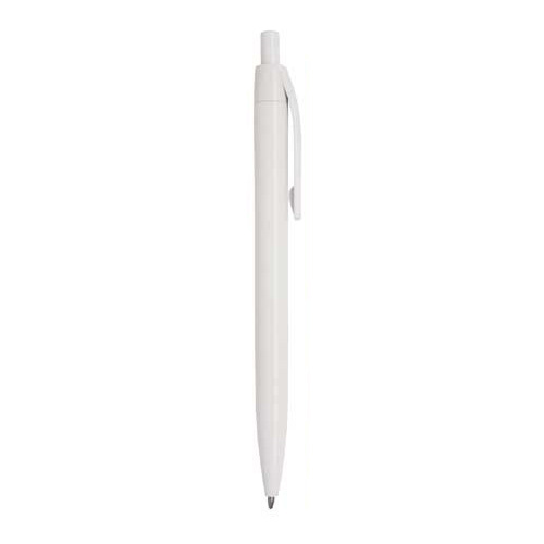 Bolígrafo de plástico de color sólido con clip y mecanismo de click.